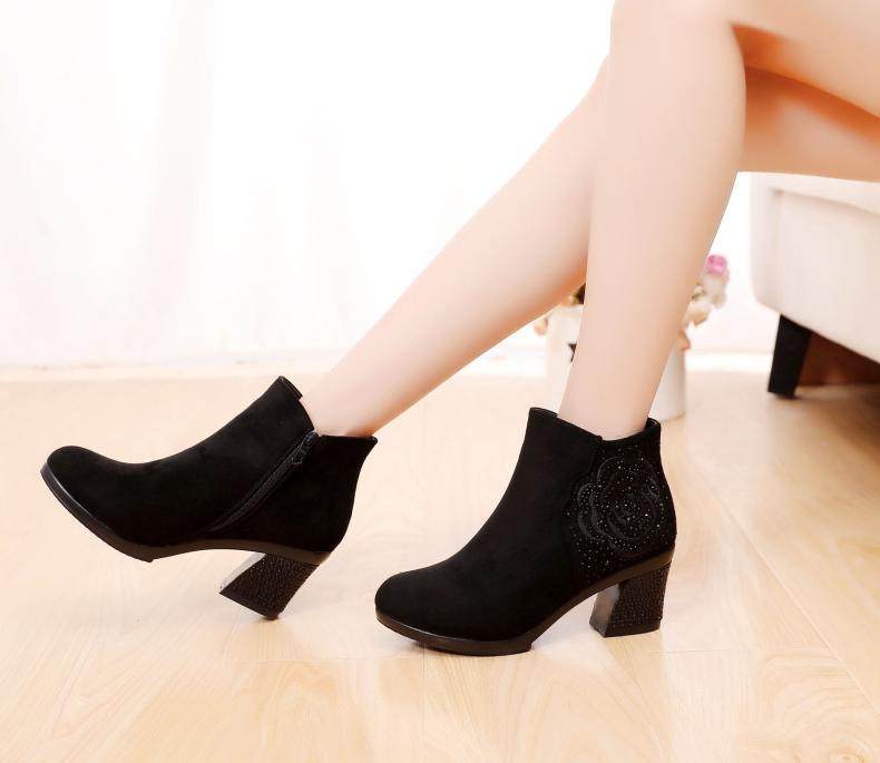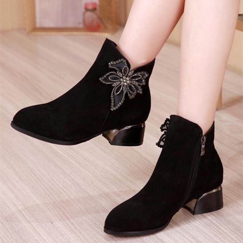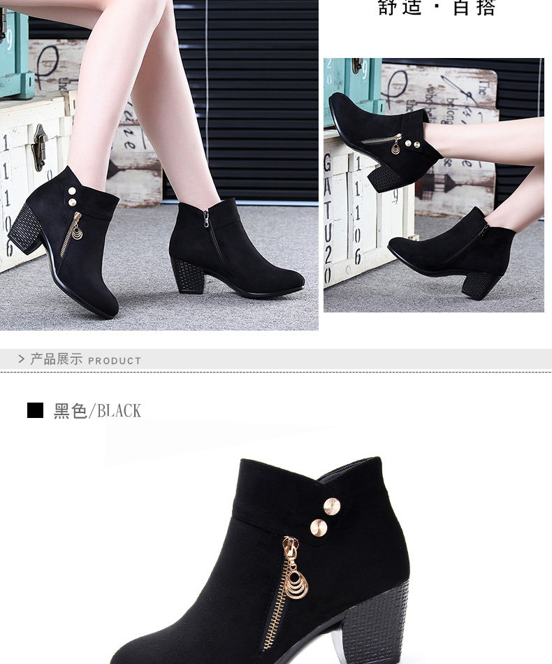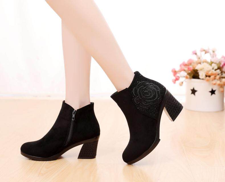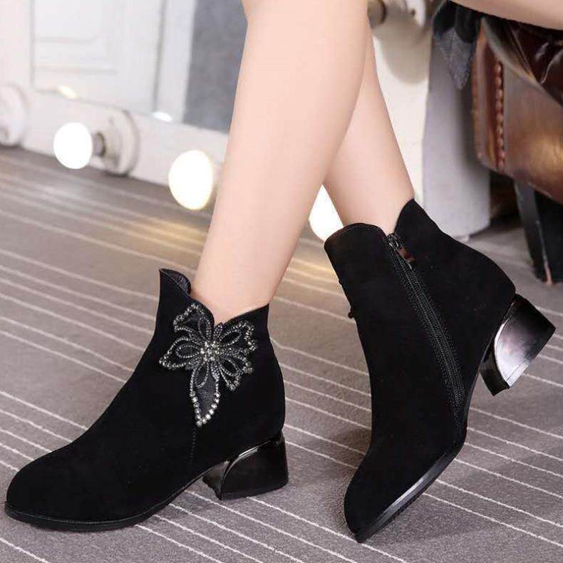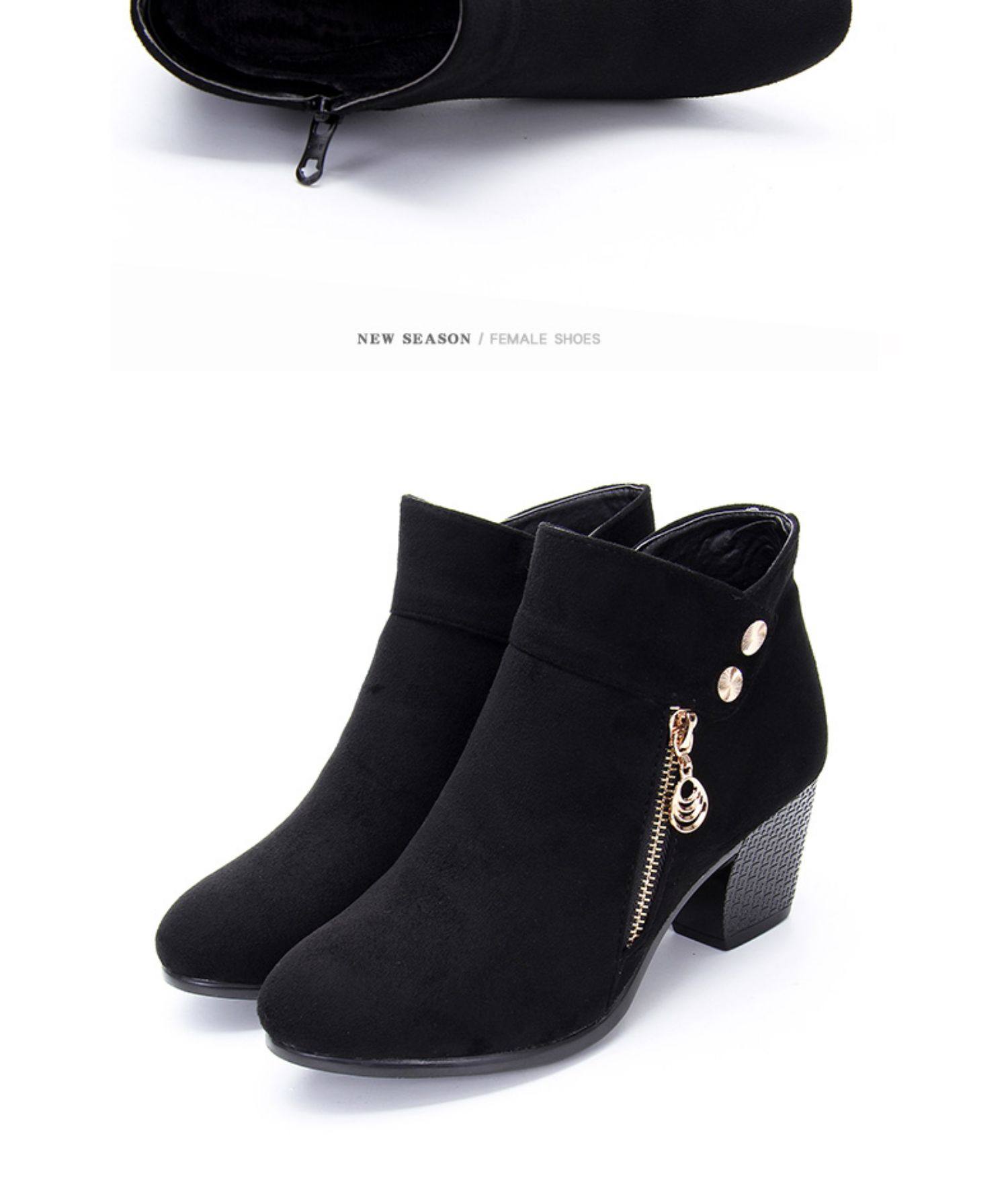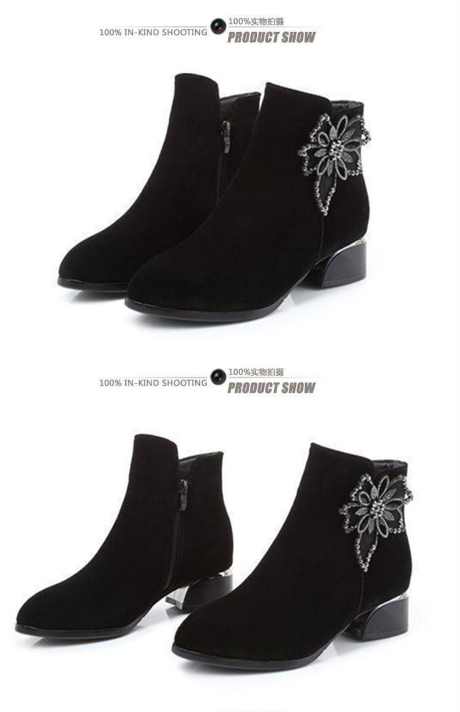- DD66-1 Black Plus Velvet Short Boots