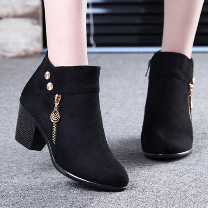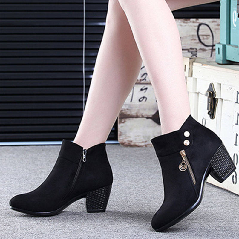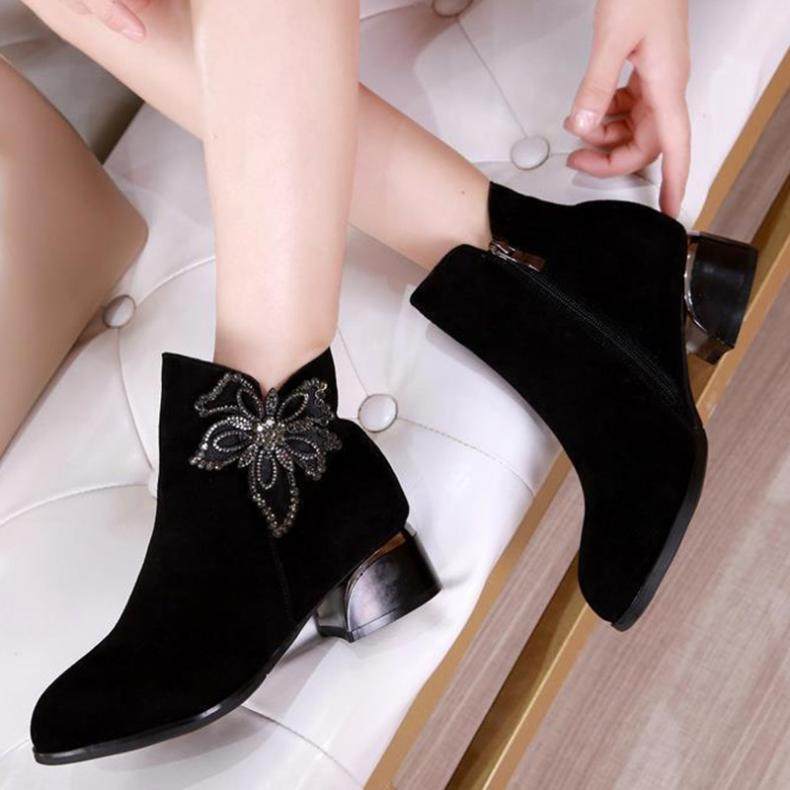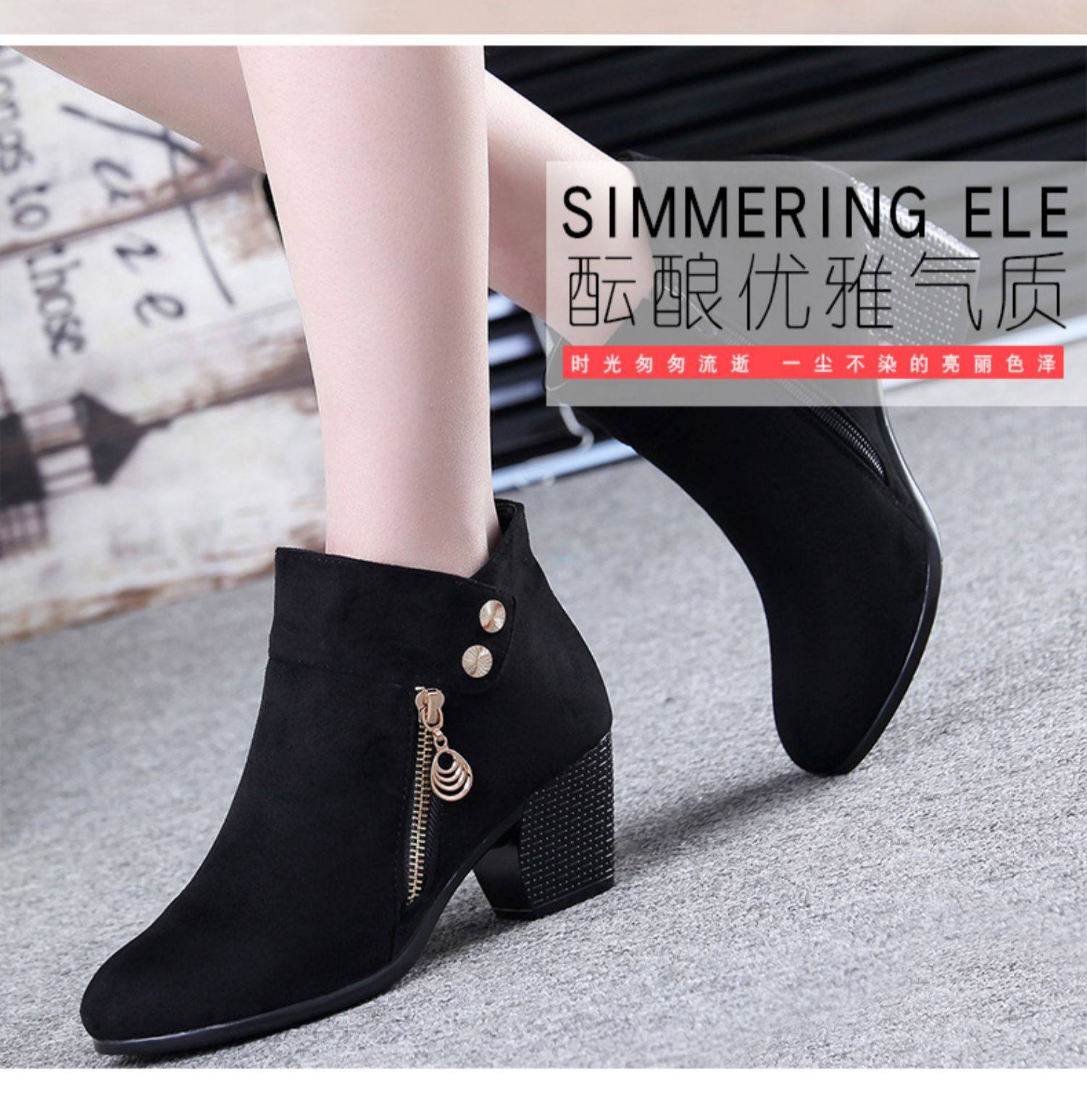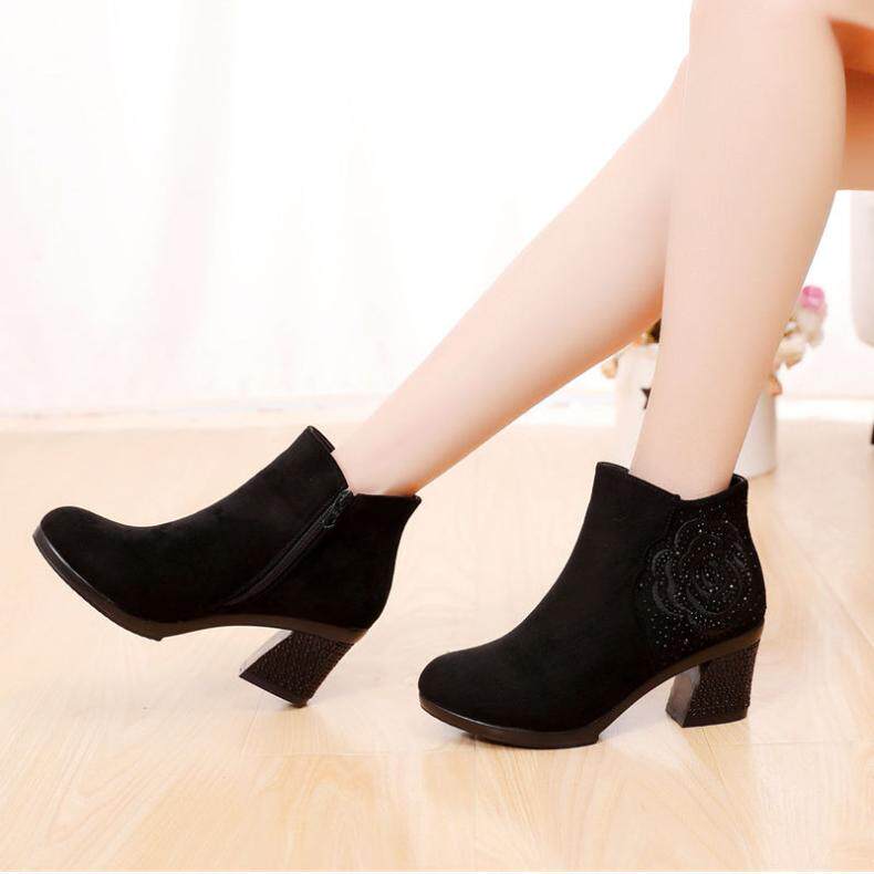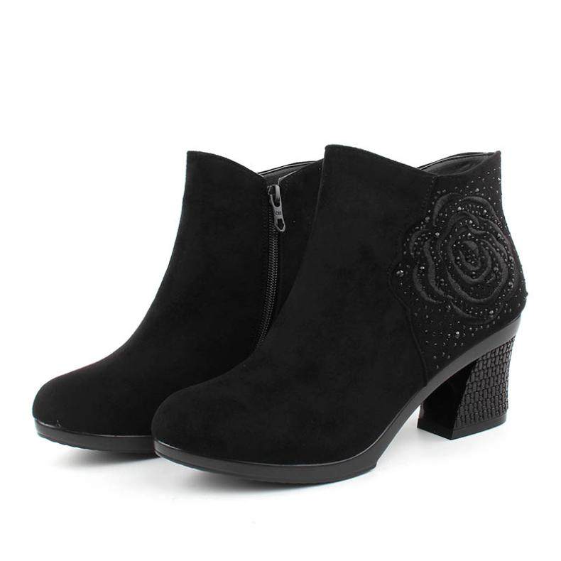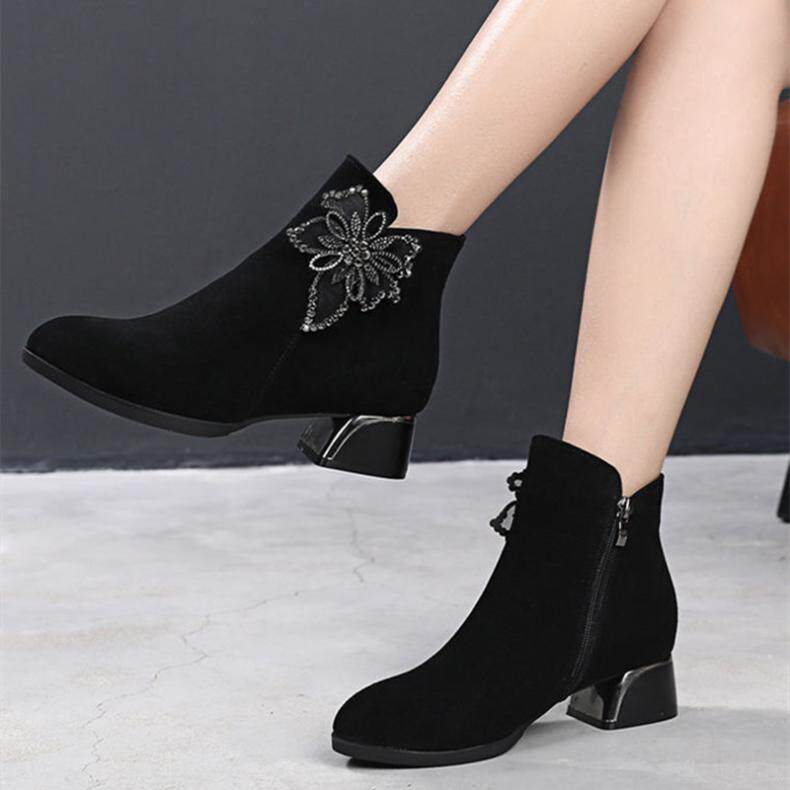 - DD66-1 Black Plus Velvet Short Boots