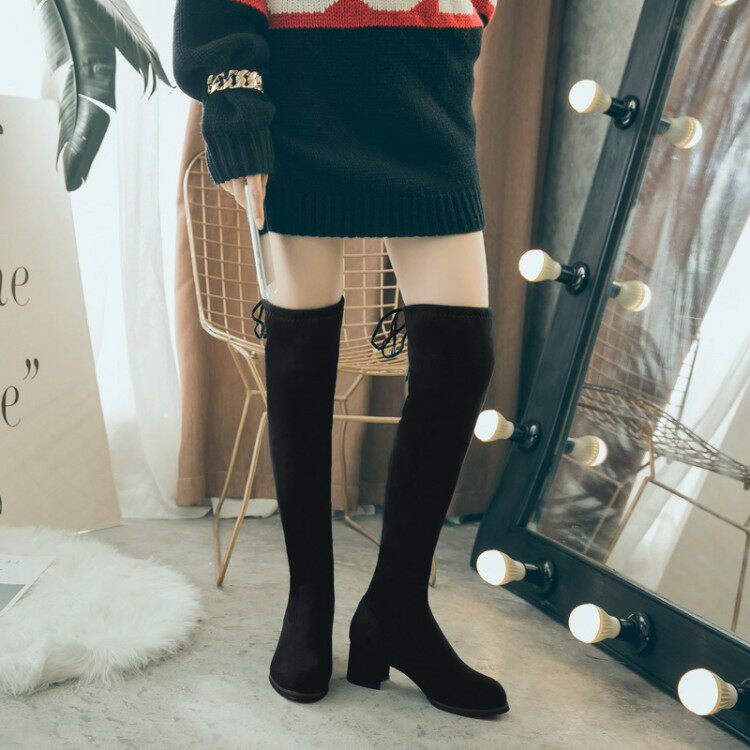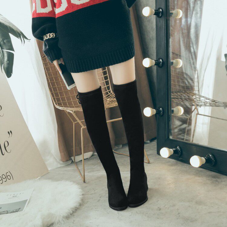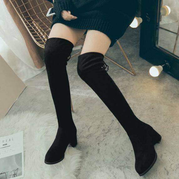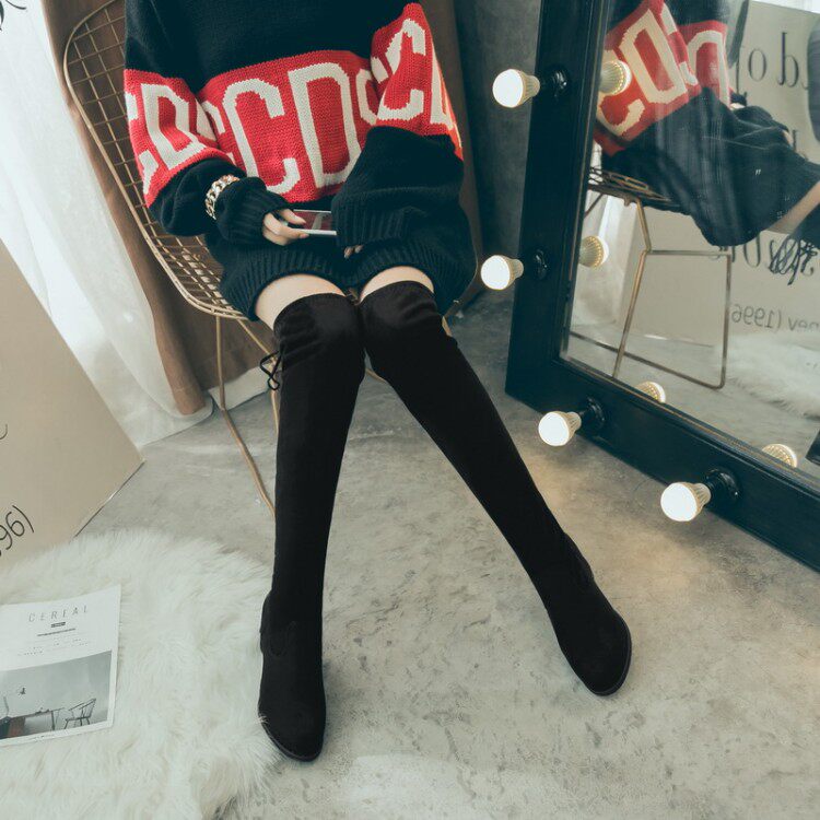 Корейская версия женских ботинок тонкая, а ботинки с толстым коленом большой размер 44 46 47 48 49 Bigire Boots 44-48 ярдов