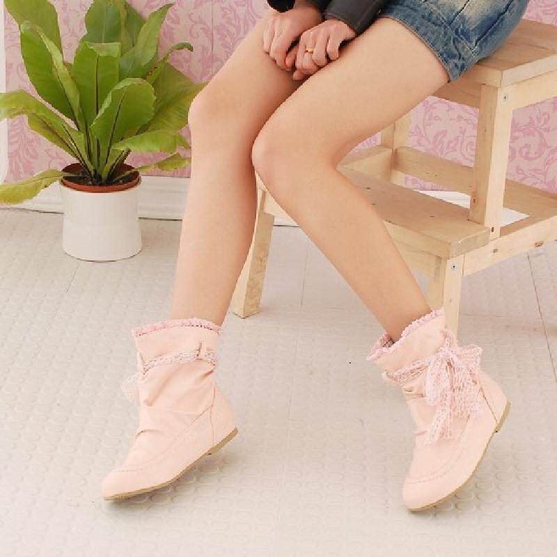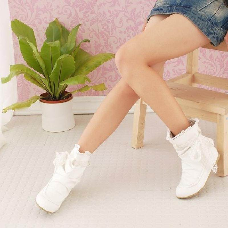 Короткие сапоги, универсальные милые белые ботинки для школьников и студентов с бантиком