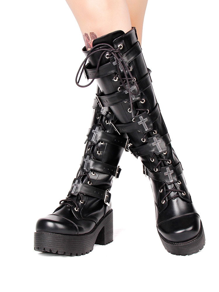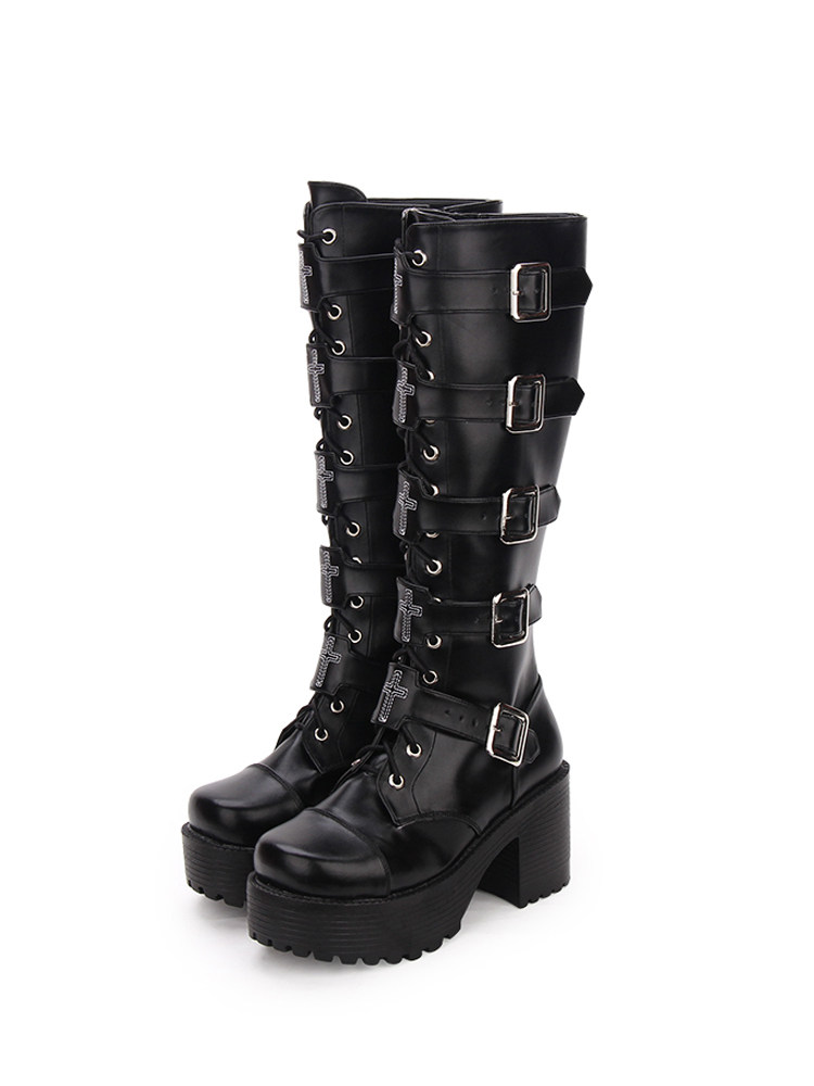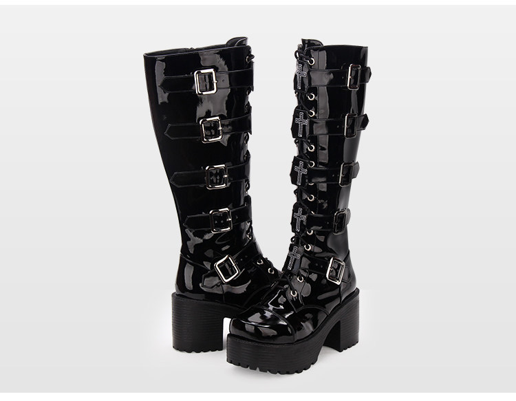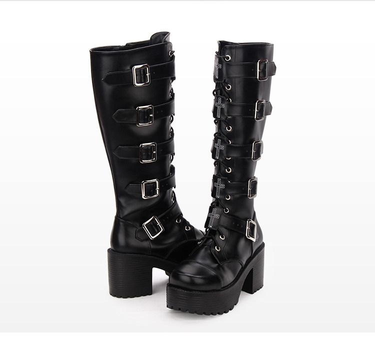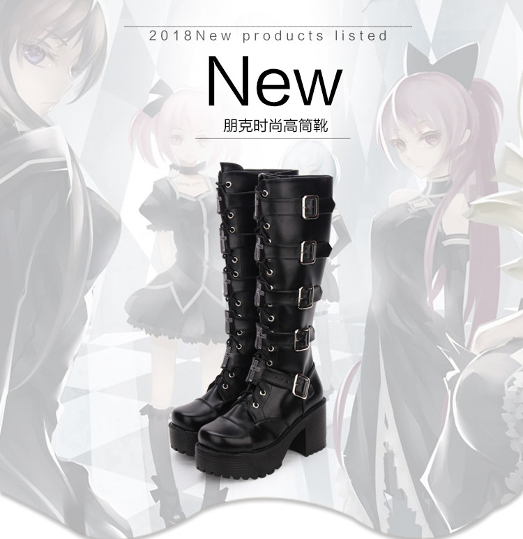 Японские классические высокие сапоги на платформе, в стиле панк, стиль Лолита, косплей