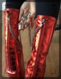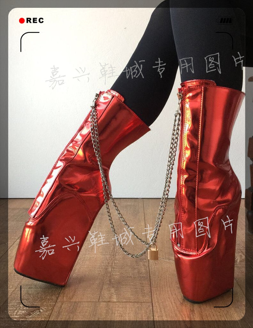【Внешний вид обуви】Застежка -тип переднего замка, внутреннее перфорированное кружево, с медной замком железной цепи, балетным мешком и короткими сапогами