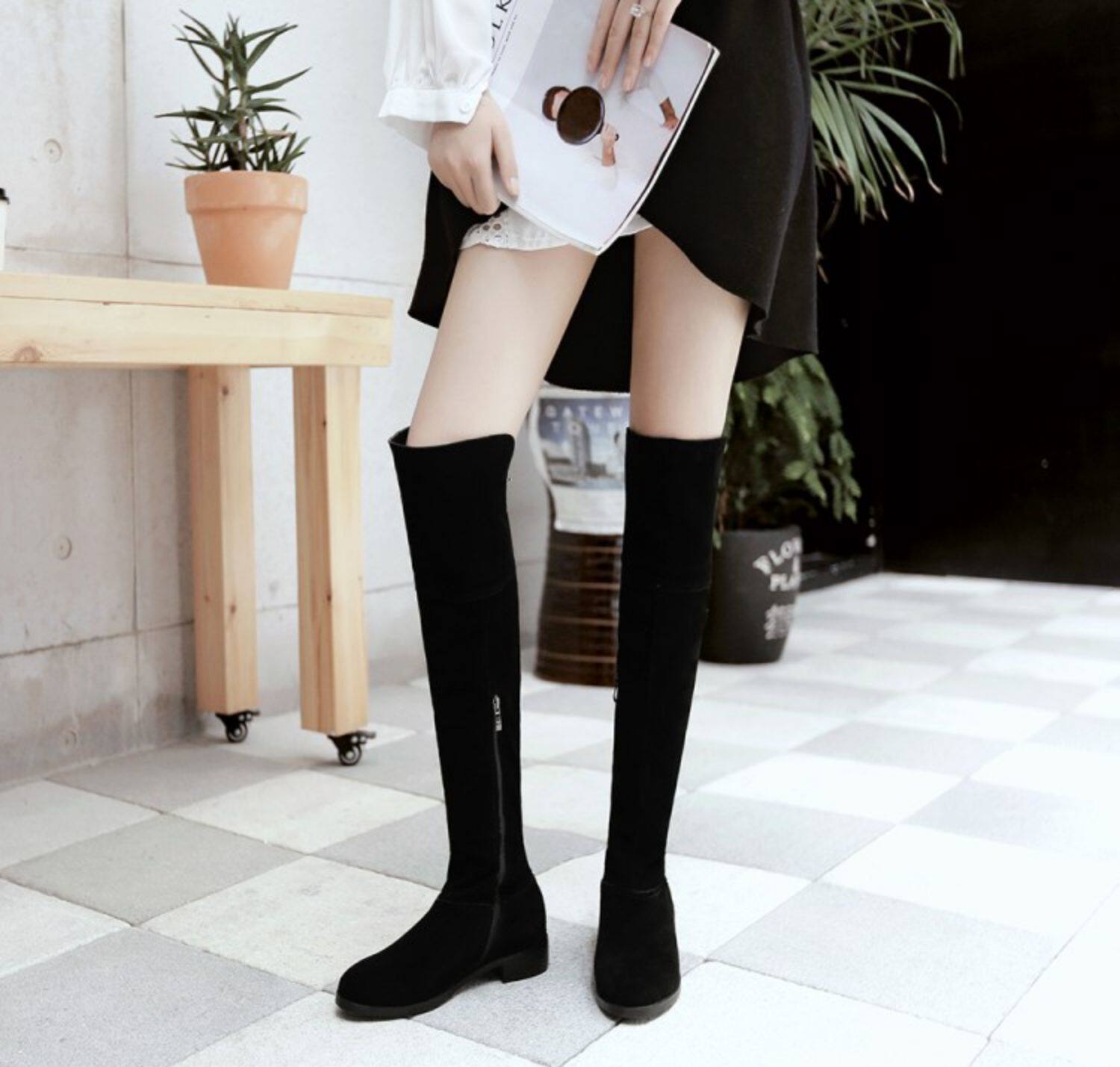 Демисезонные высокие сапоги, матовые ботинки, из натуральной кожи