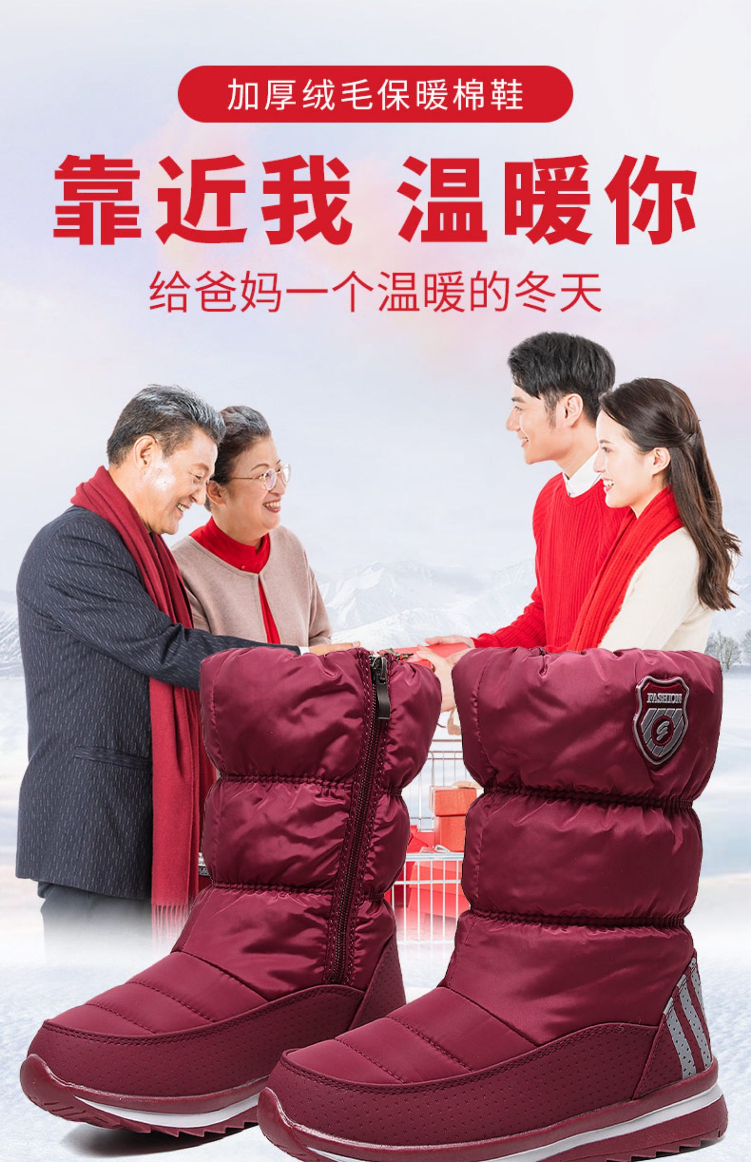 Утепленные нескользящие демисезонные туфли, короткие сапоги, лыжные ботинки, средней длины
