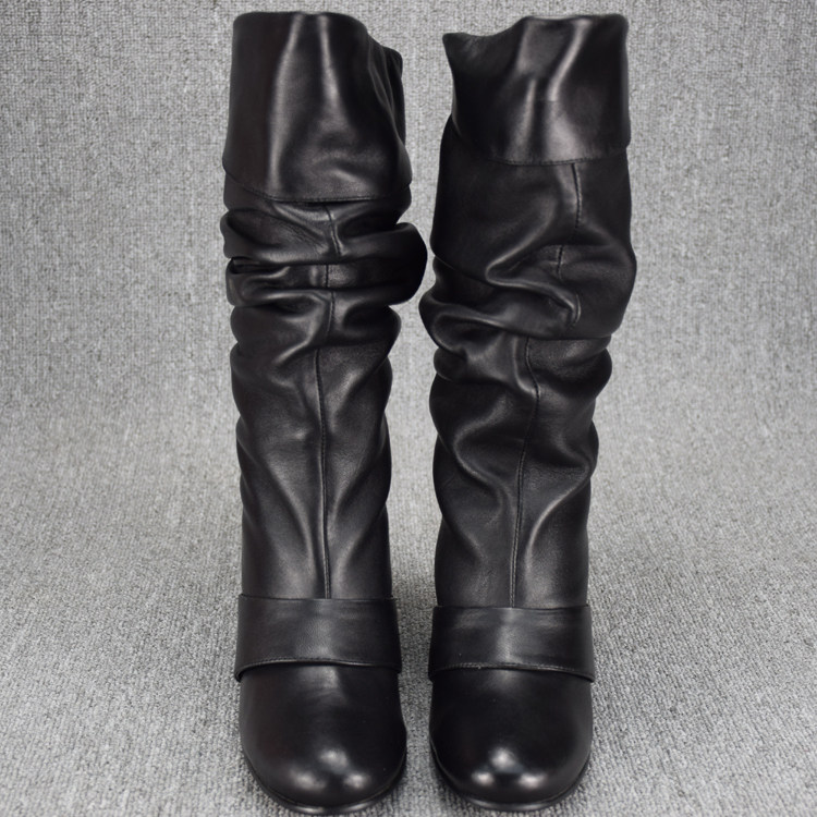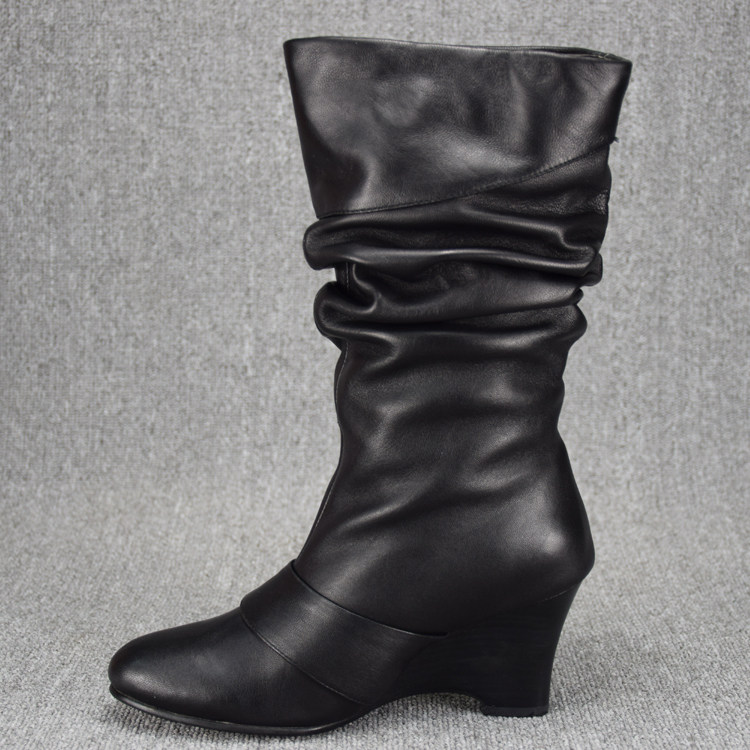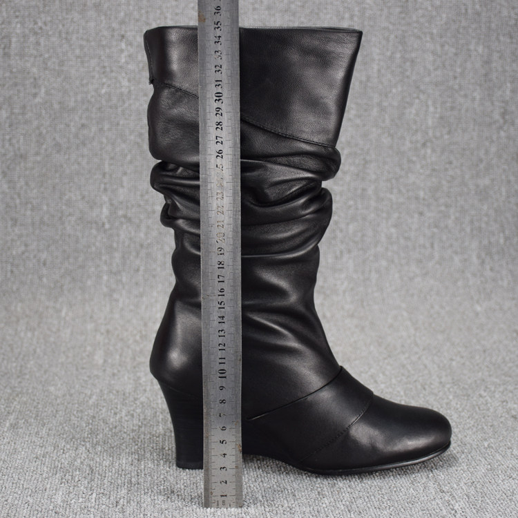 Короткие сапоги, ботинки, удерживающие тепло высокие сапоги, большой размер, из натуральной кожи, средней длины