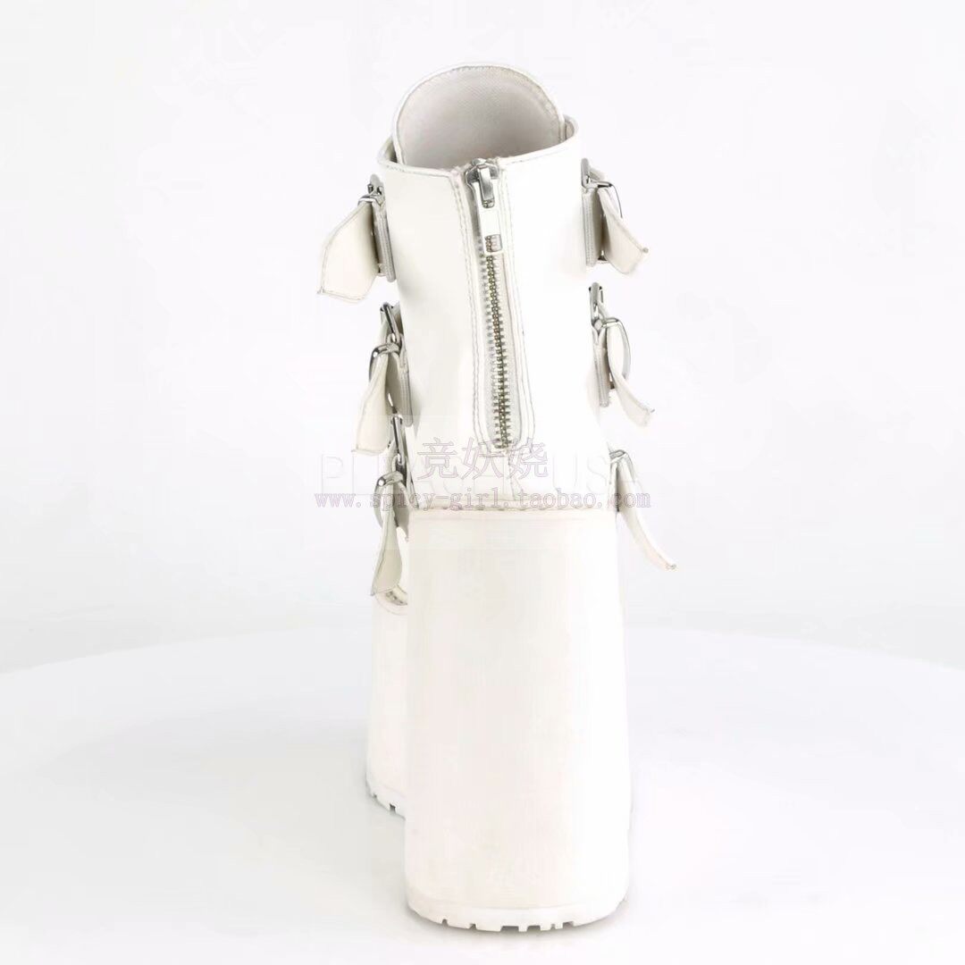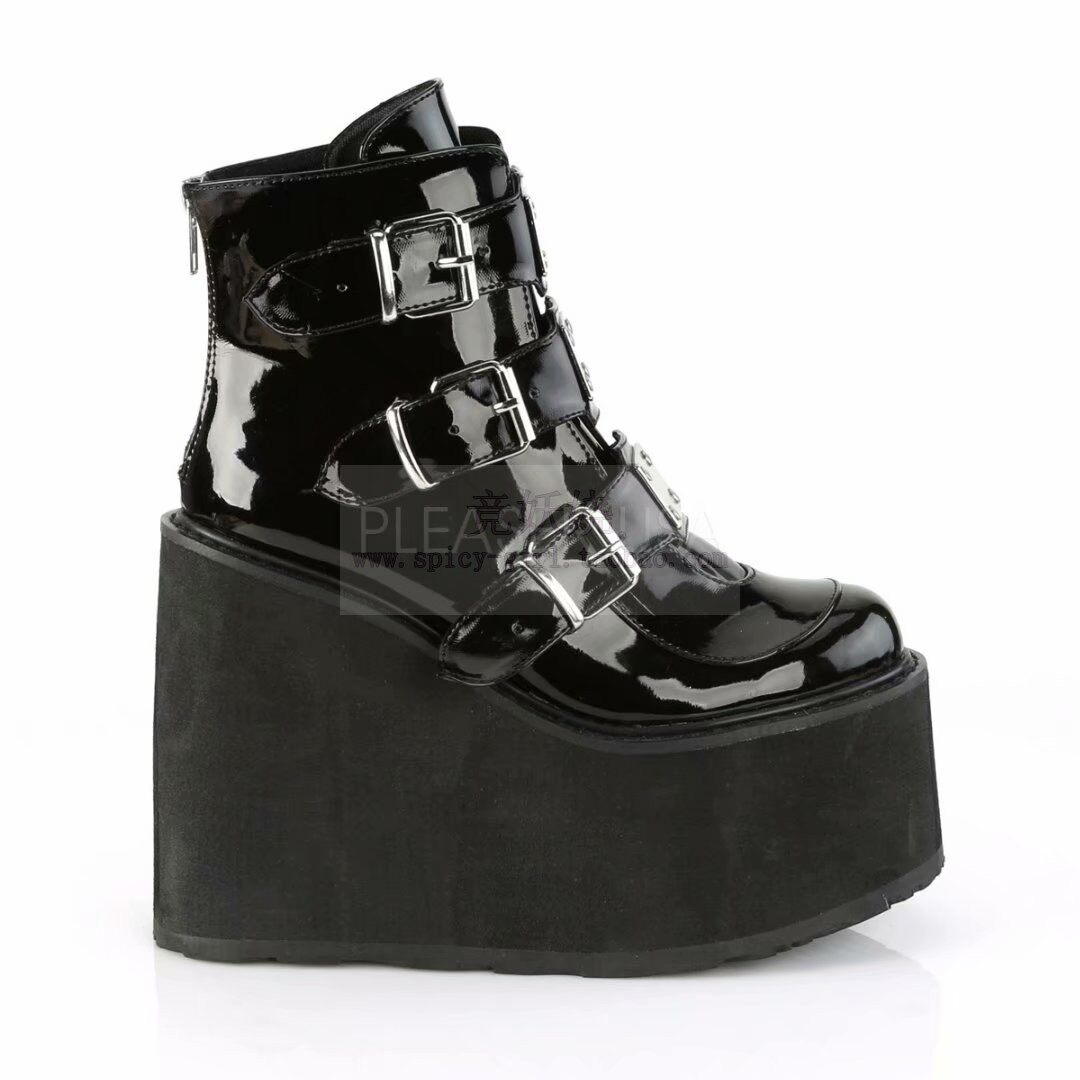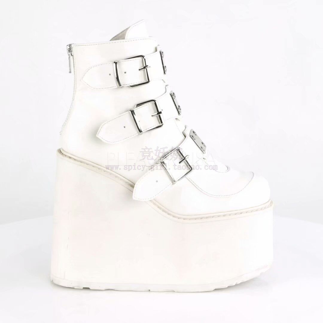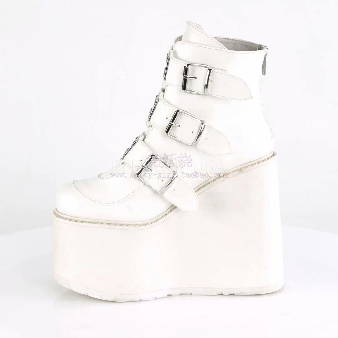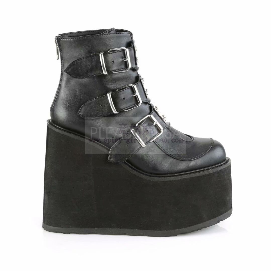 Черные сапоги на платформе, ремень с молнией, пряжка, ботильоны, США, 14см