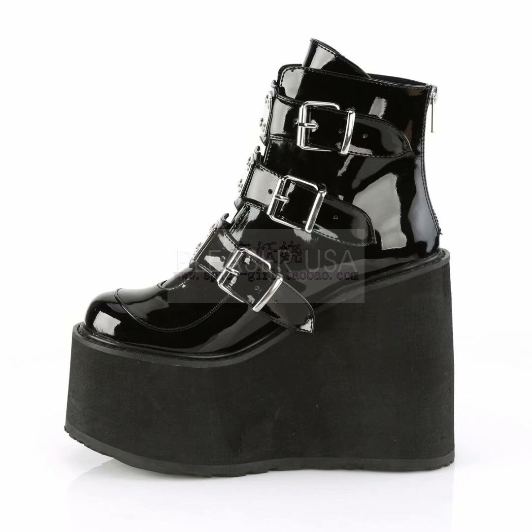 Американский агент по закупкам [Демония] Черные толстые короткие ботинки задницу на молнии застежки для сапог на молнию
