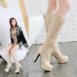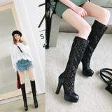 Ботинки, летние туфли на высоком каблуке, в цветочек, большой размер, средней длины