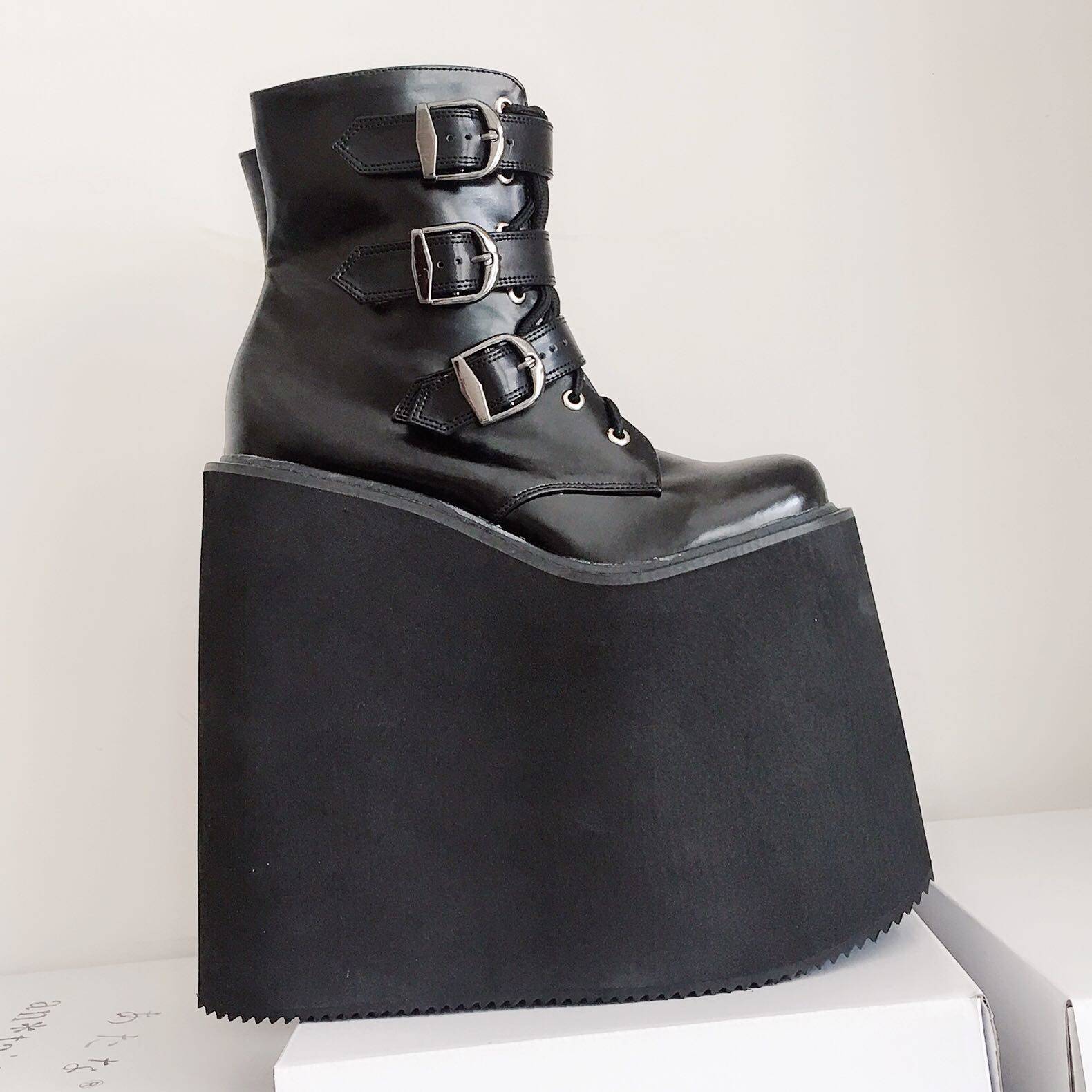 Импортный экологически чистый верх из полиуретана и подкладка из натуральной кожи. Подошва 20 см, водонепроницаемая платформа 14 см спереди.