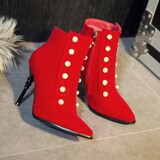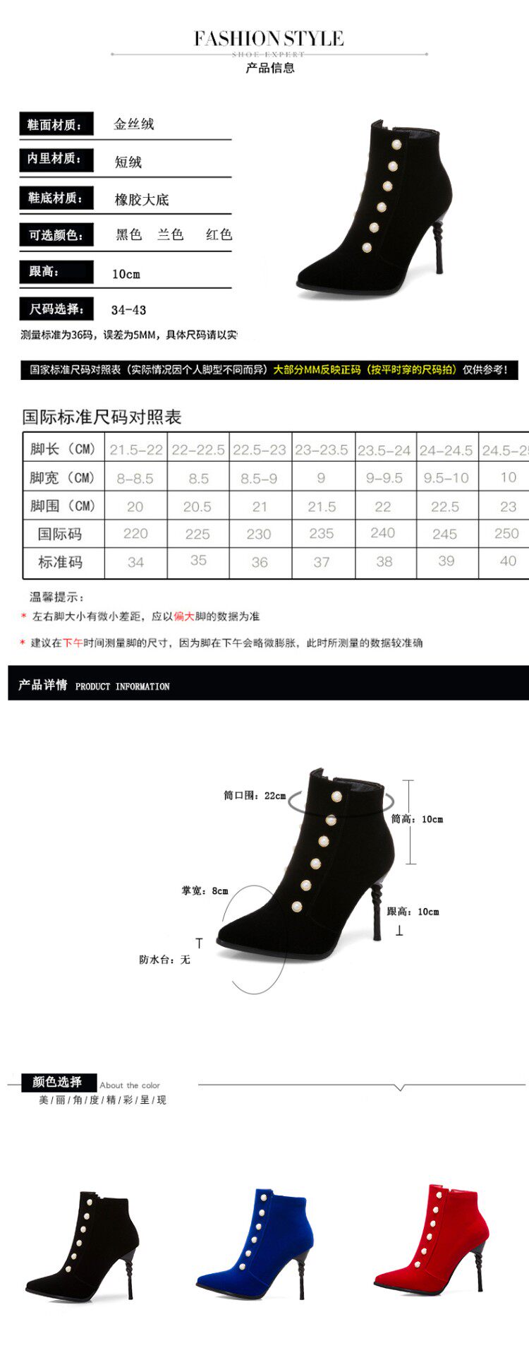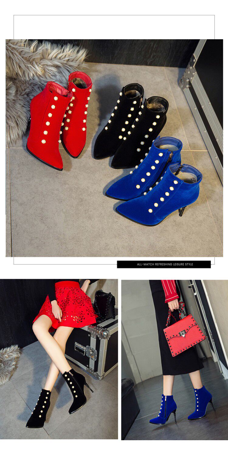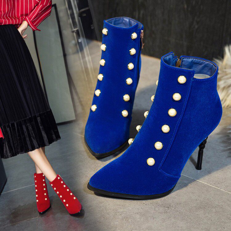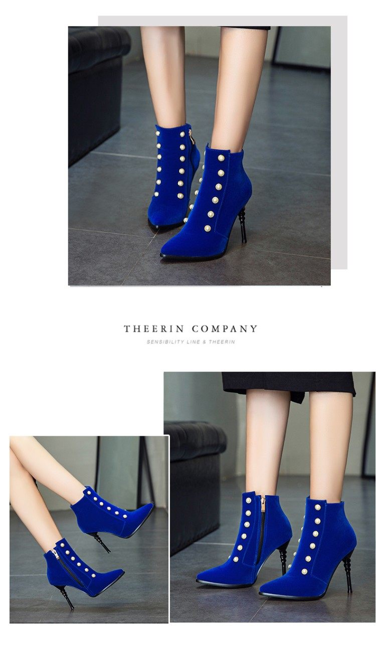Модные синие короткие сапоги в английском стиле на высоком каблуке, ботинки с заостренным носом, большой размер