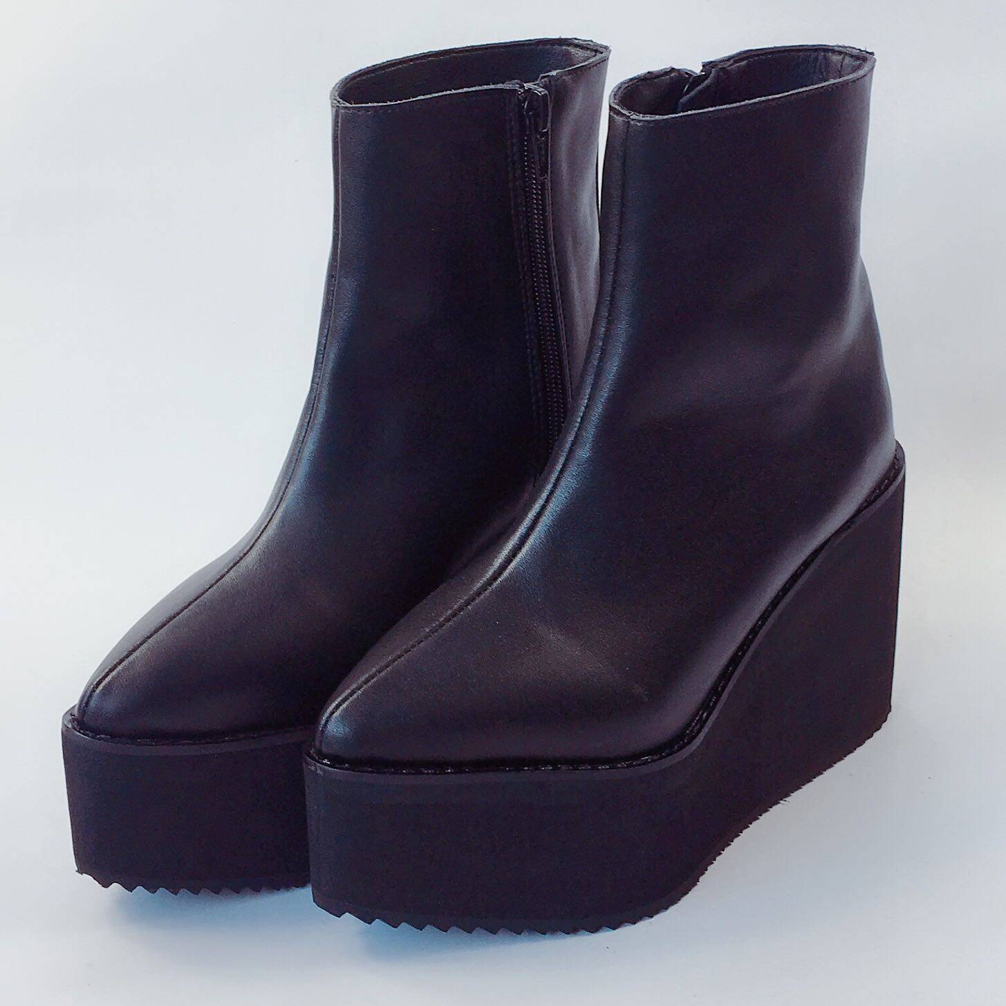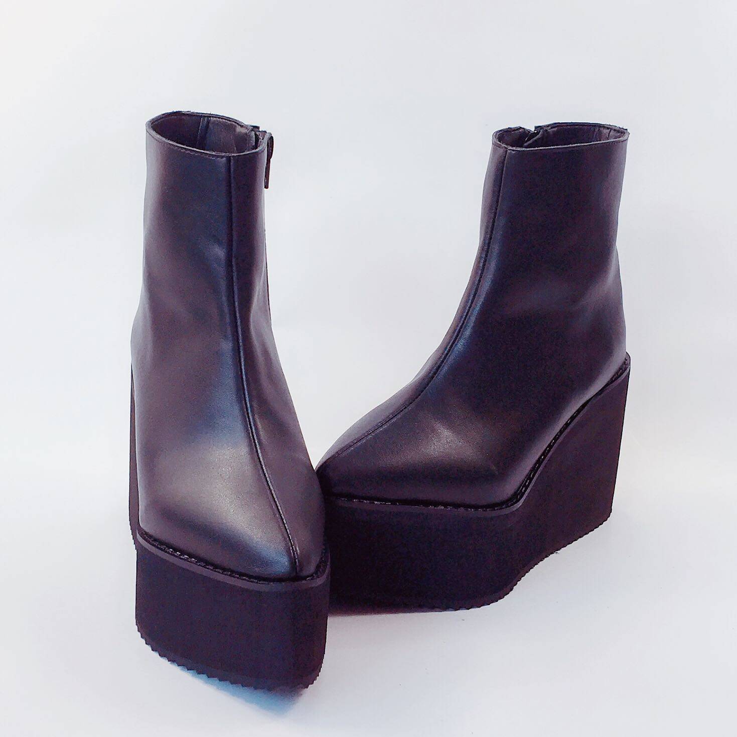 [Высота каблука и материал] Коровья замша, натуральная кожа. Подошва - платформа сзади 10 см, спереди 5 см, нескользящая подошва.