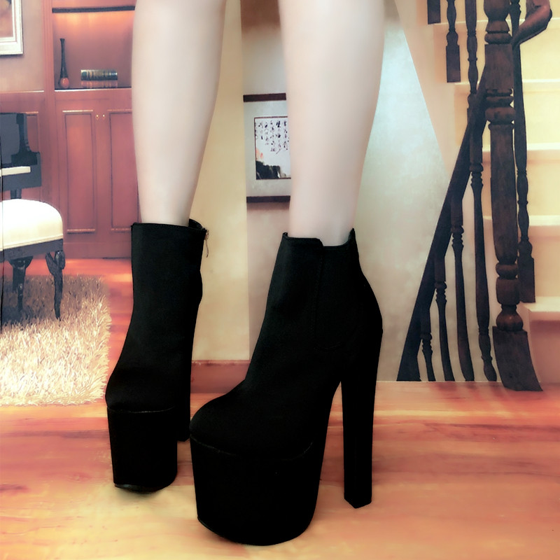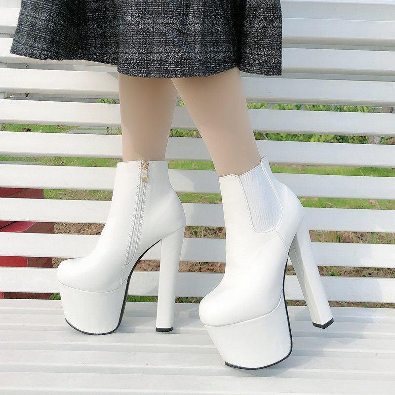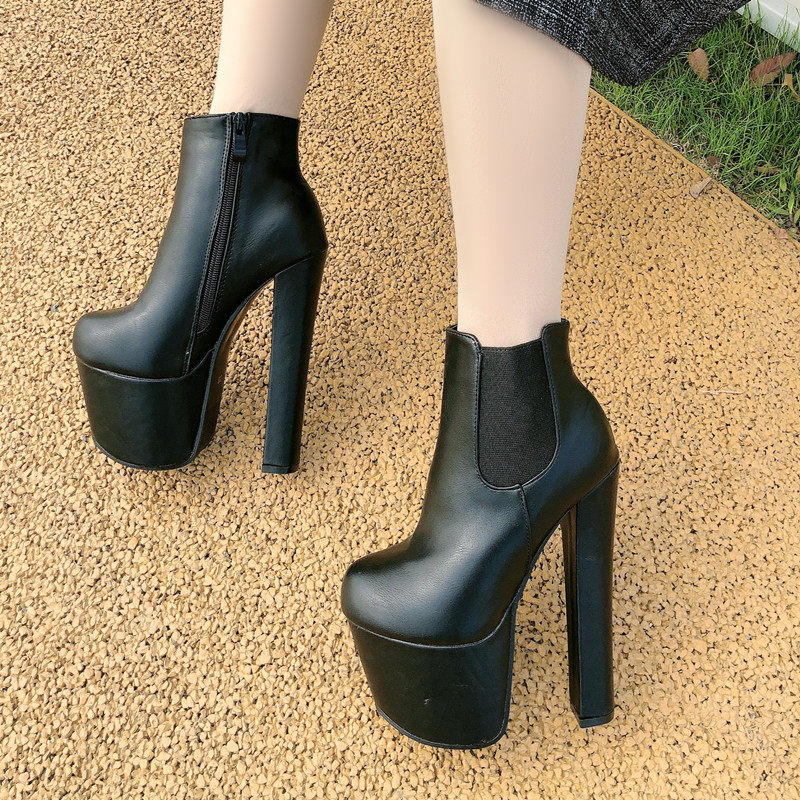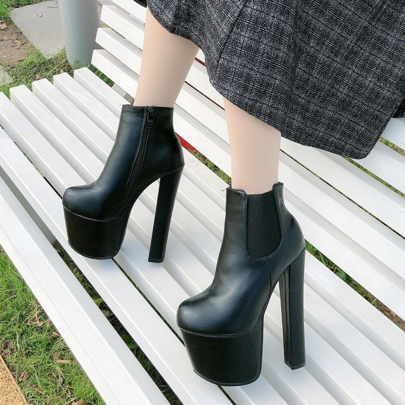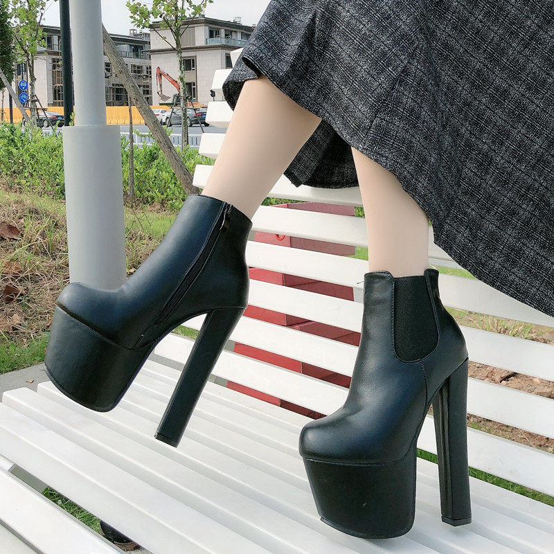 Новинка 2023 года, весенне-осенние британские ботинки «Мартинс» на высоком каблуке, модные женские короткие сапоги, голые ботинки на платформе и толстом каблуке, женская обувь с круглым носком 17 см