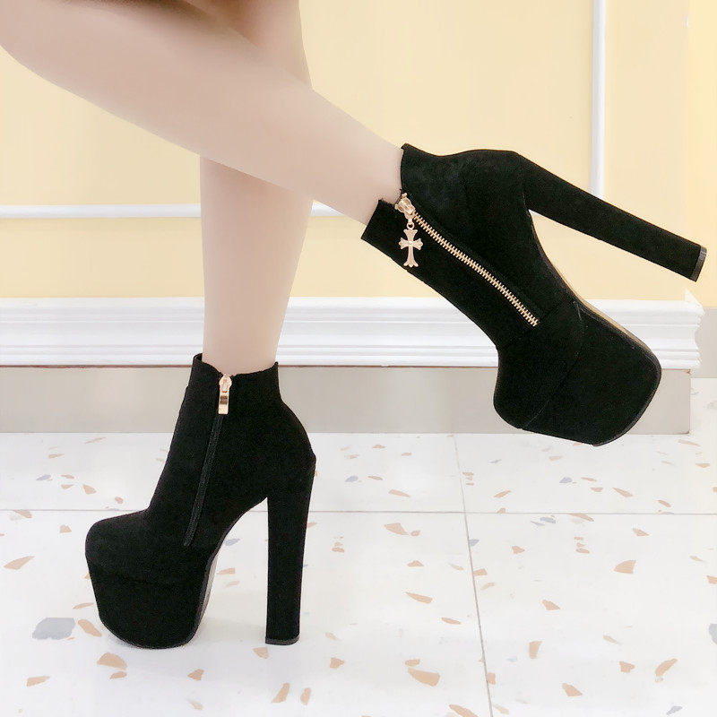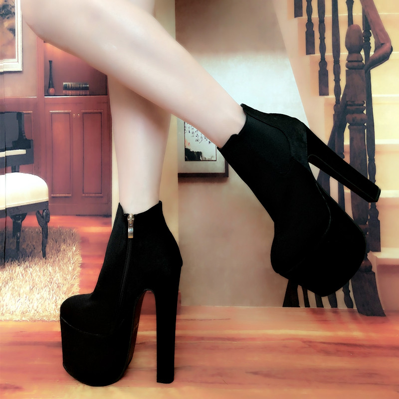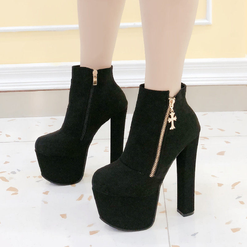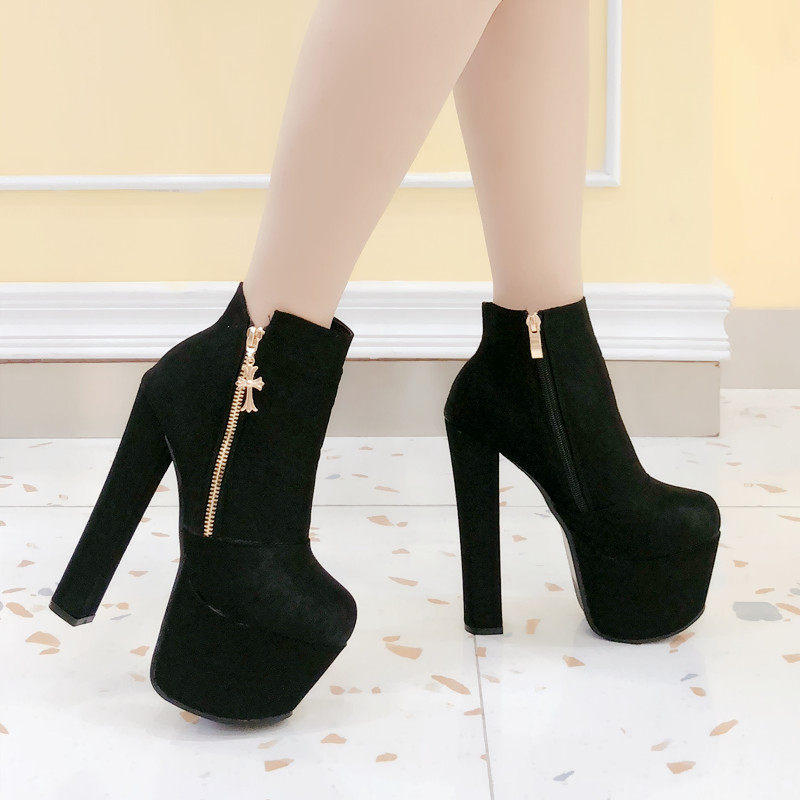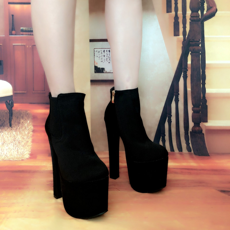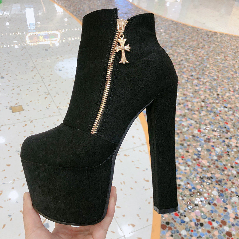 Новинка 2023 года, весенне-осенние британские ботинки «Мартинс» на высоком каблуке, модные женские короткие сапоги, голые ботинки на платформе и толстом каблуке, женская обувь с круглым носком 17 см