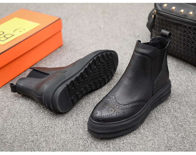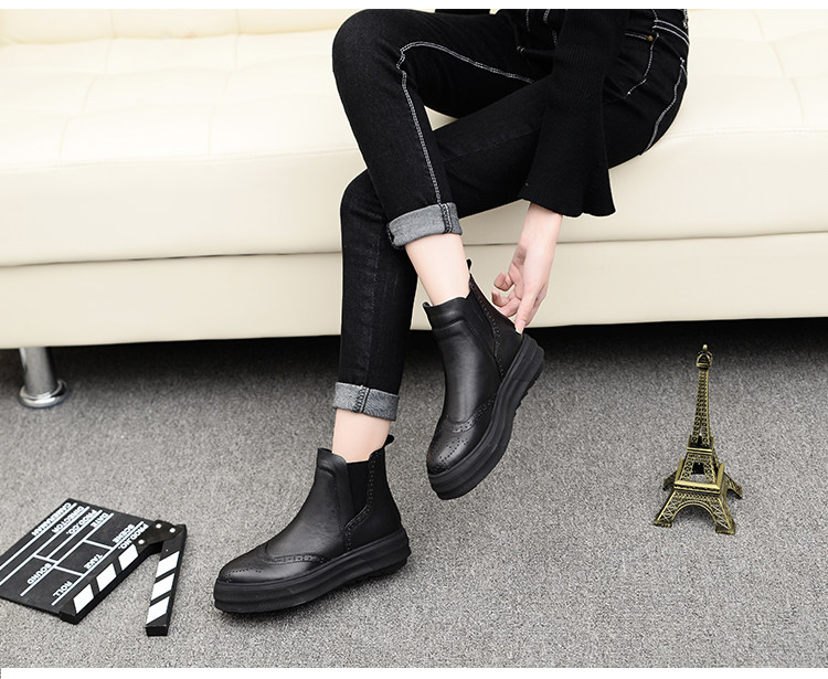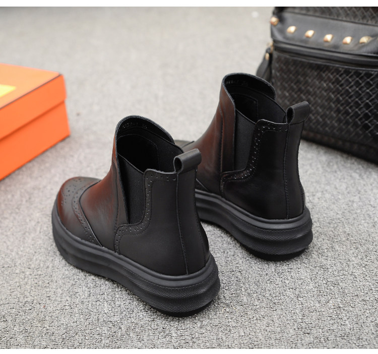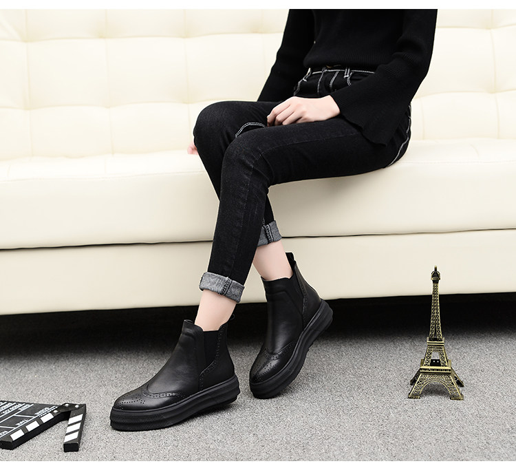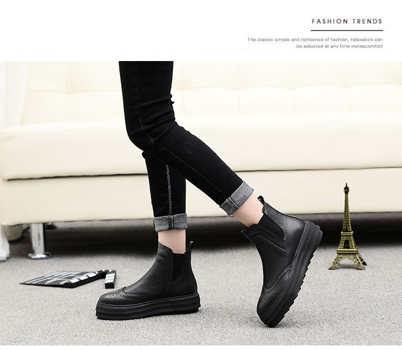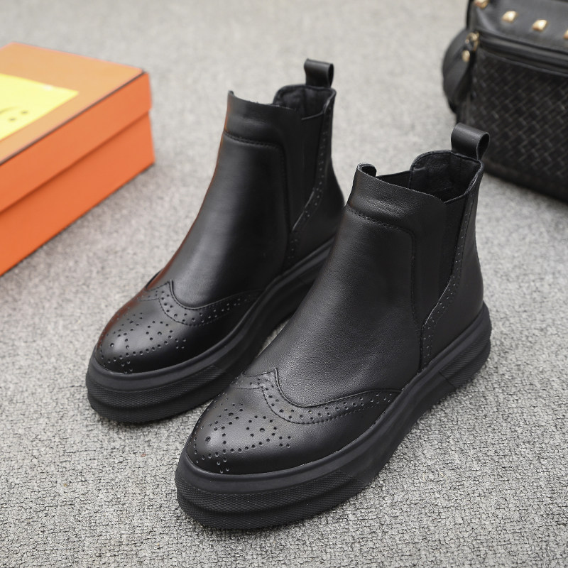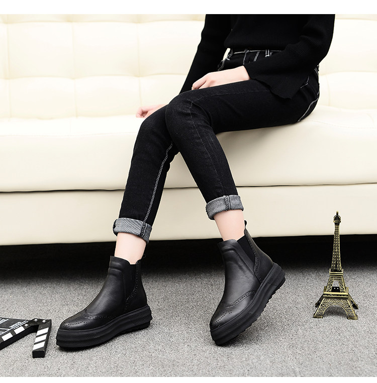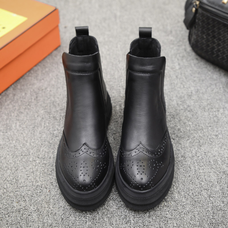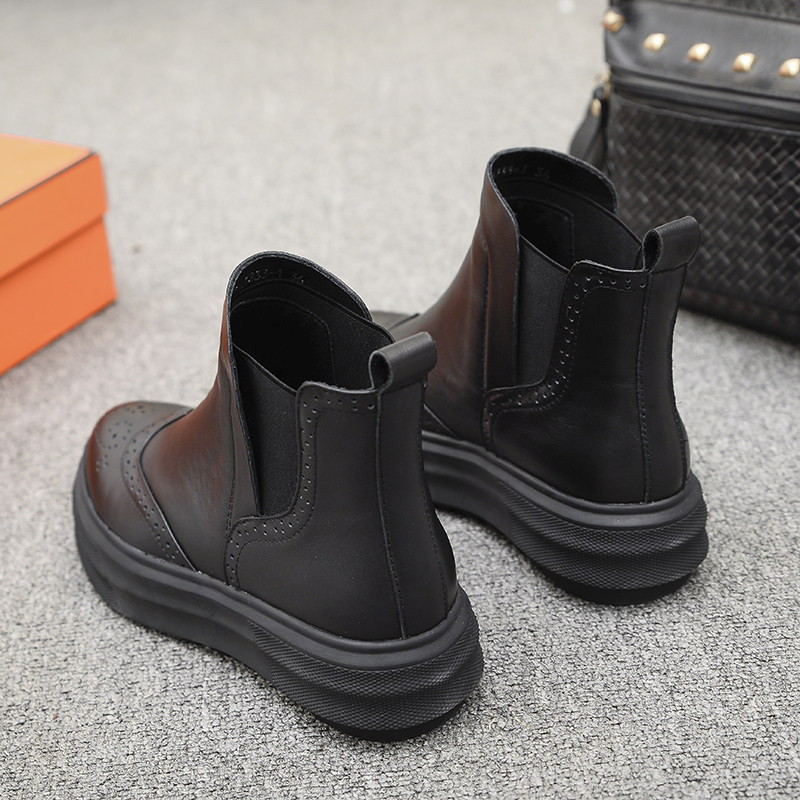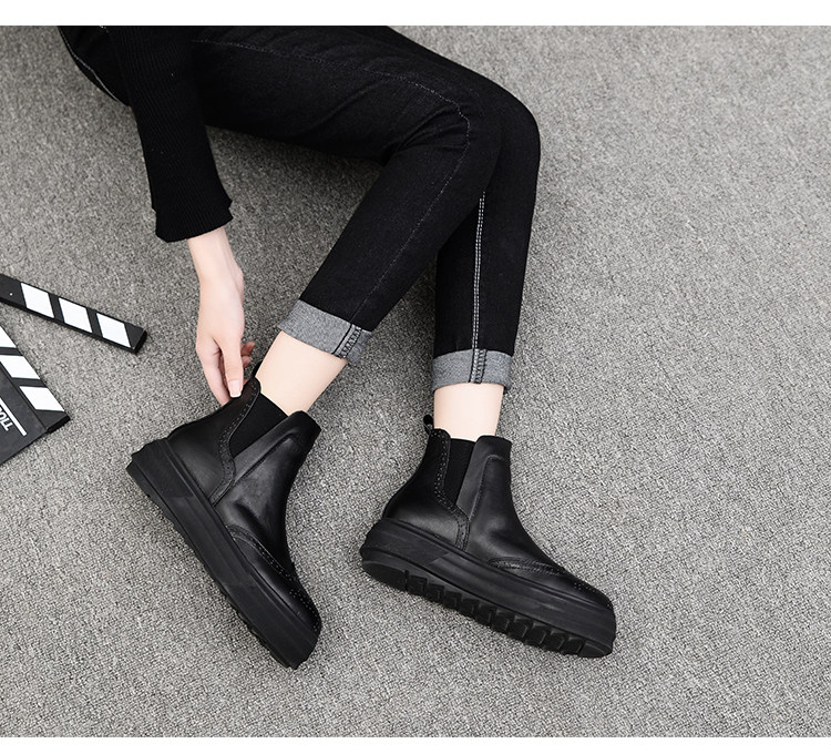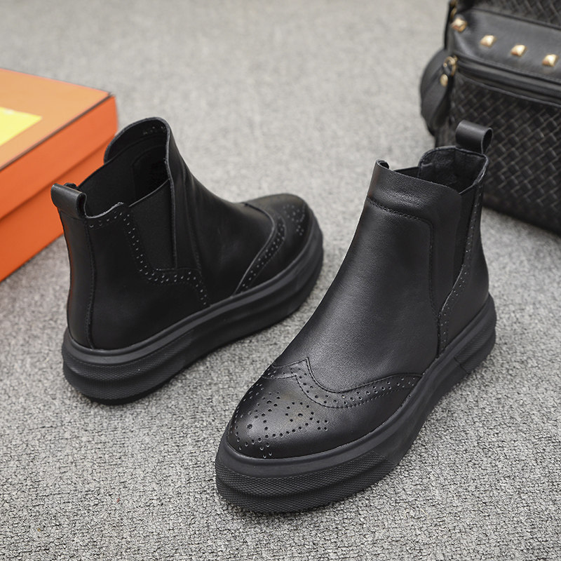 Демисезонные челси с заостренным носом в английском стиле на платформе, короткие сапоги, европейский стиль, в британском стиле, из натуральной кожи