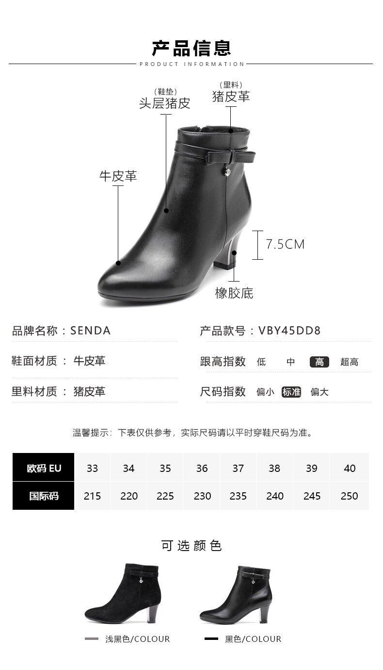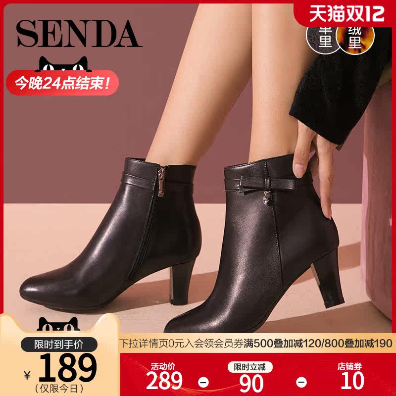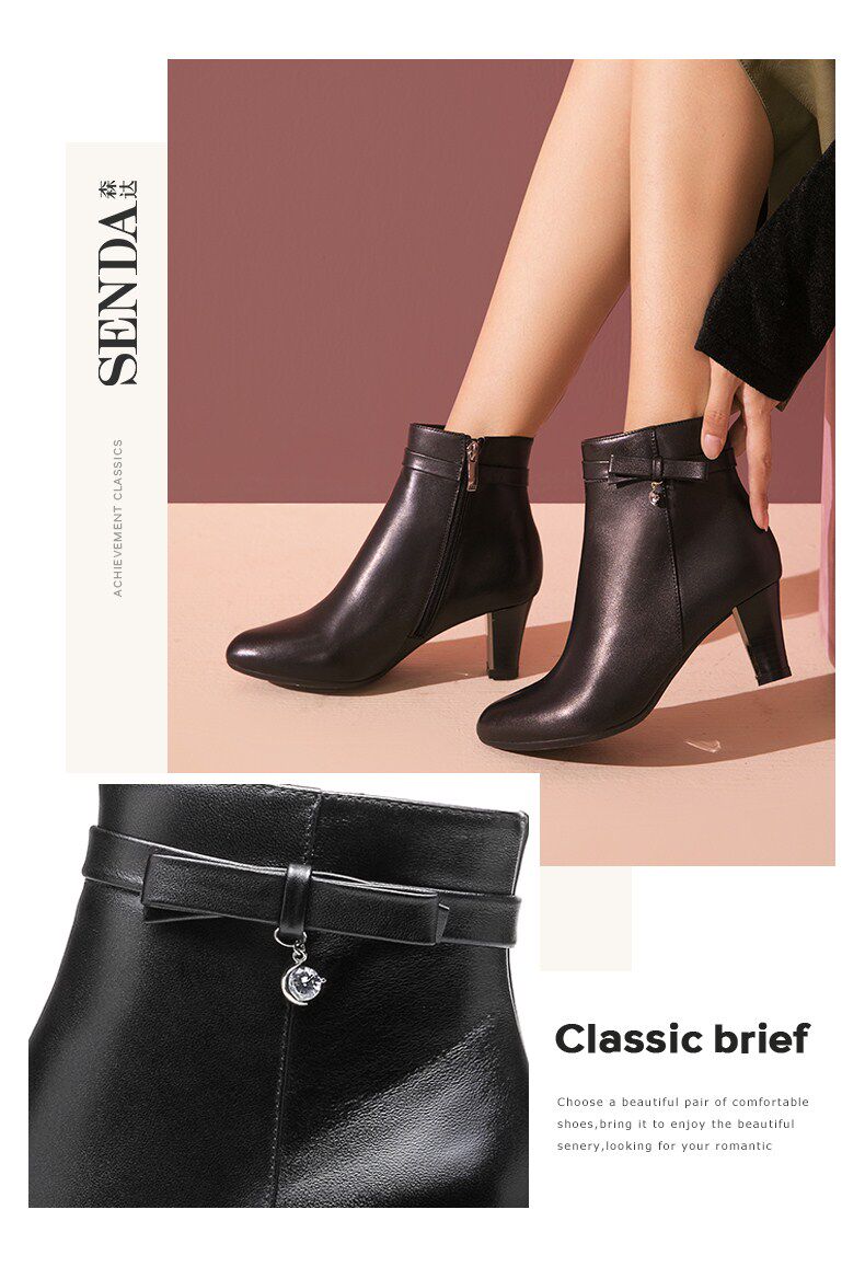 Женская обувь Senda, новые зимние удобные женские короткие ботинки на высоком каблуке для поездок на работу, темпераментные кожаные ботинки VBY45DD8