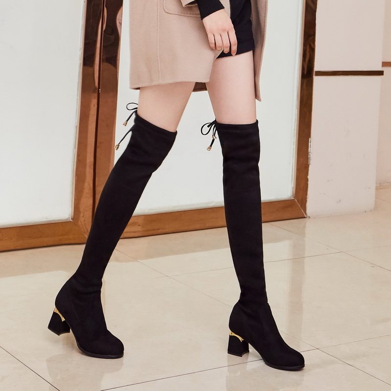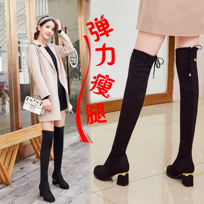 Универсальная обувь на высоком каблуке, демисезонные эластичные высокие сапоги, ботинки, по фигуре