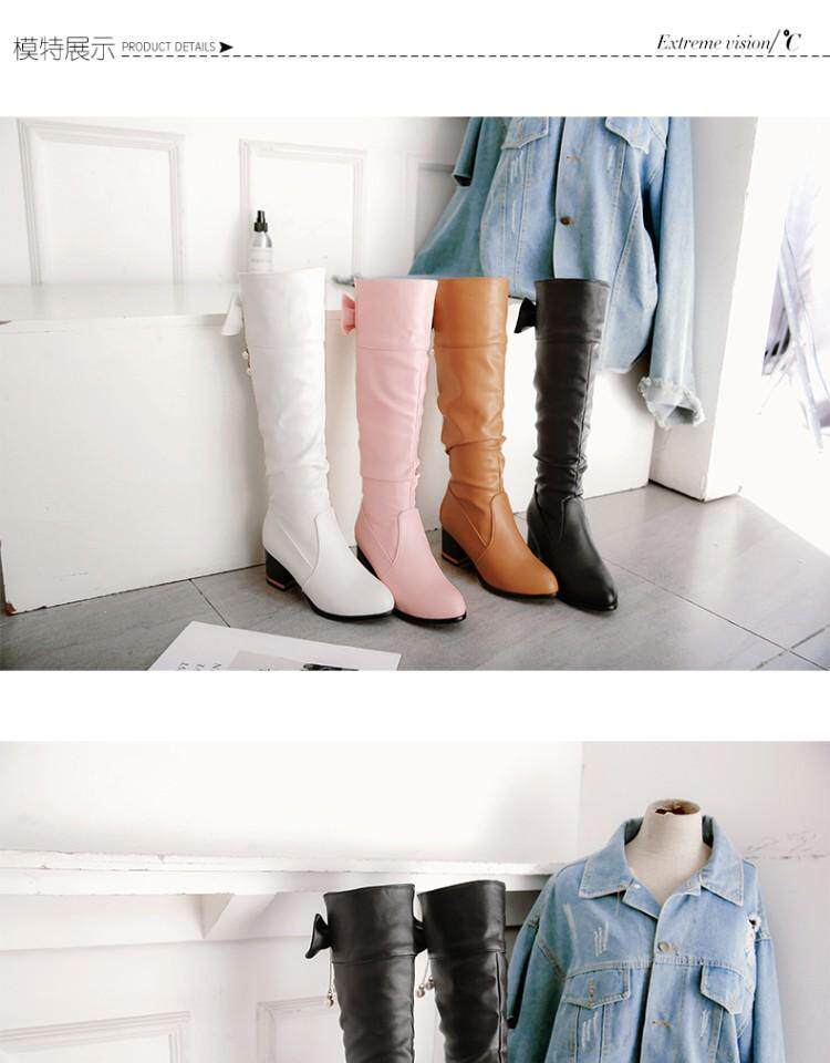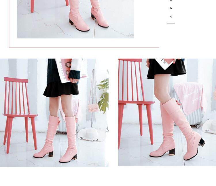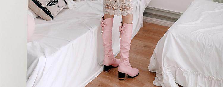 Демисезонные милые розовые высокие сапоги для школьников и студентов с бантиком