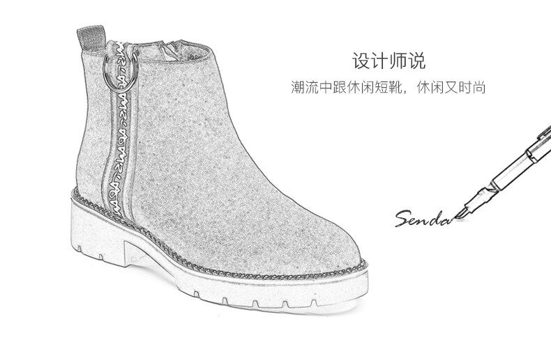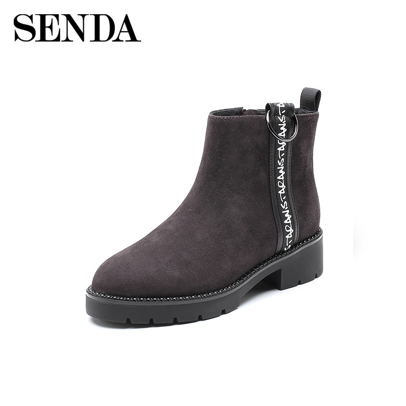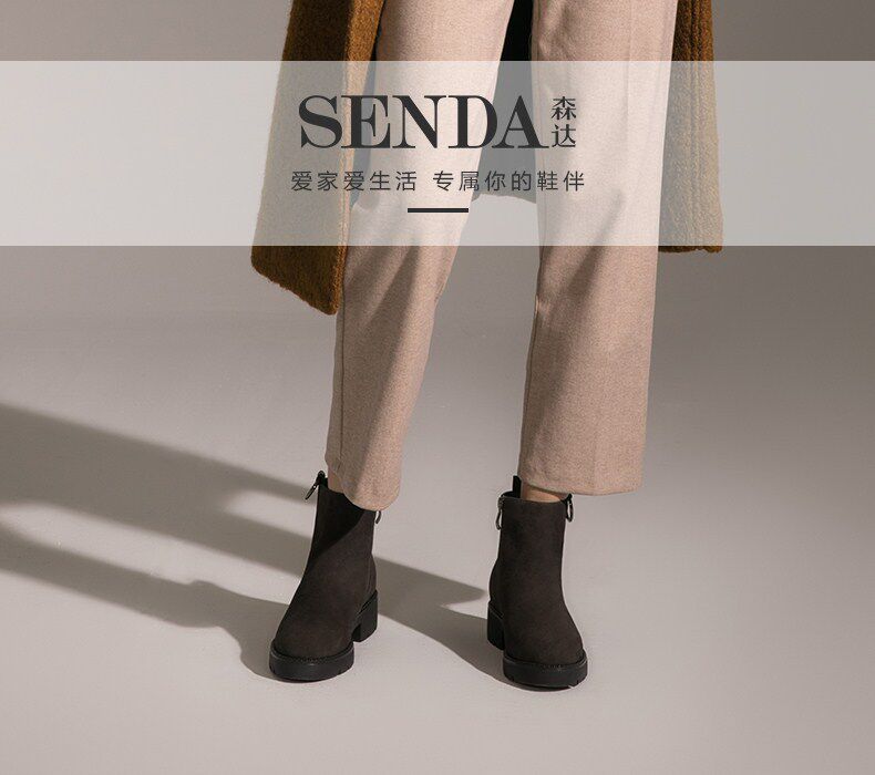 Женская обувь Senda в зимней новой стойке и той же стиль тренд средний каблук повседневные женские короткие ботинки 4ff01dd8