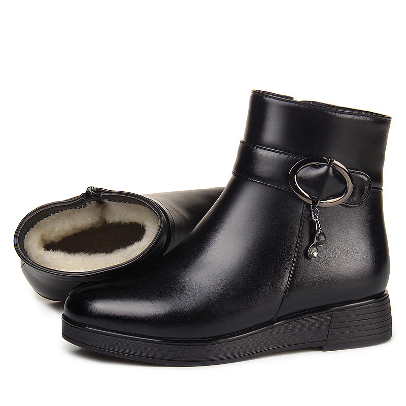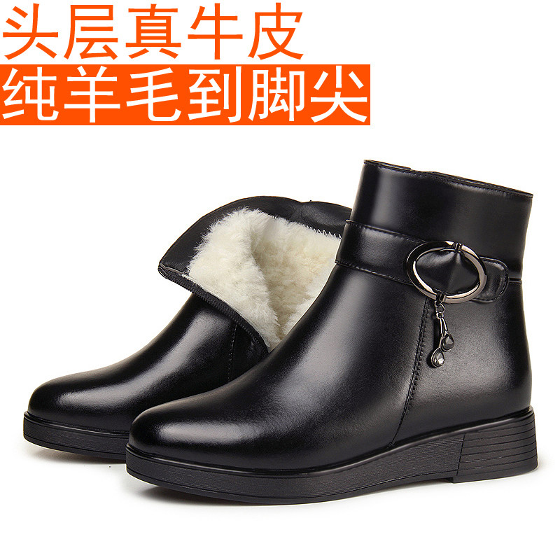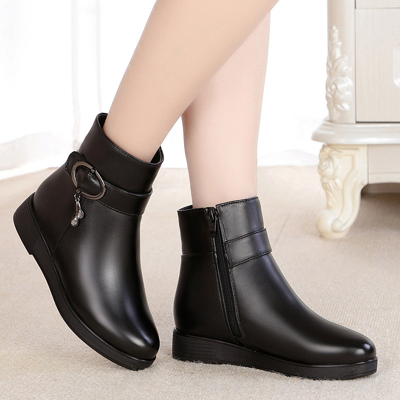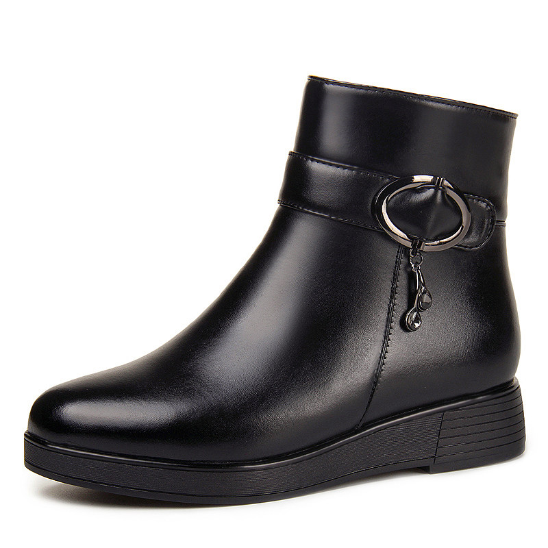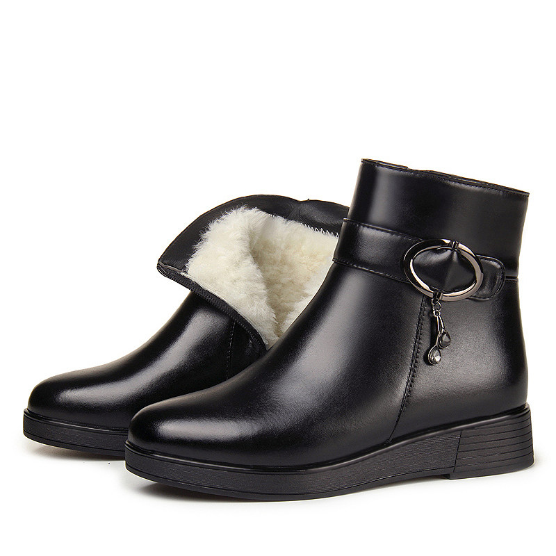 Удерживающие тепло короткие сапоги на платформе для кожаной обуви для матери, из натуральной кожи, большой размер, для среднего возраста