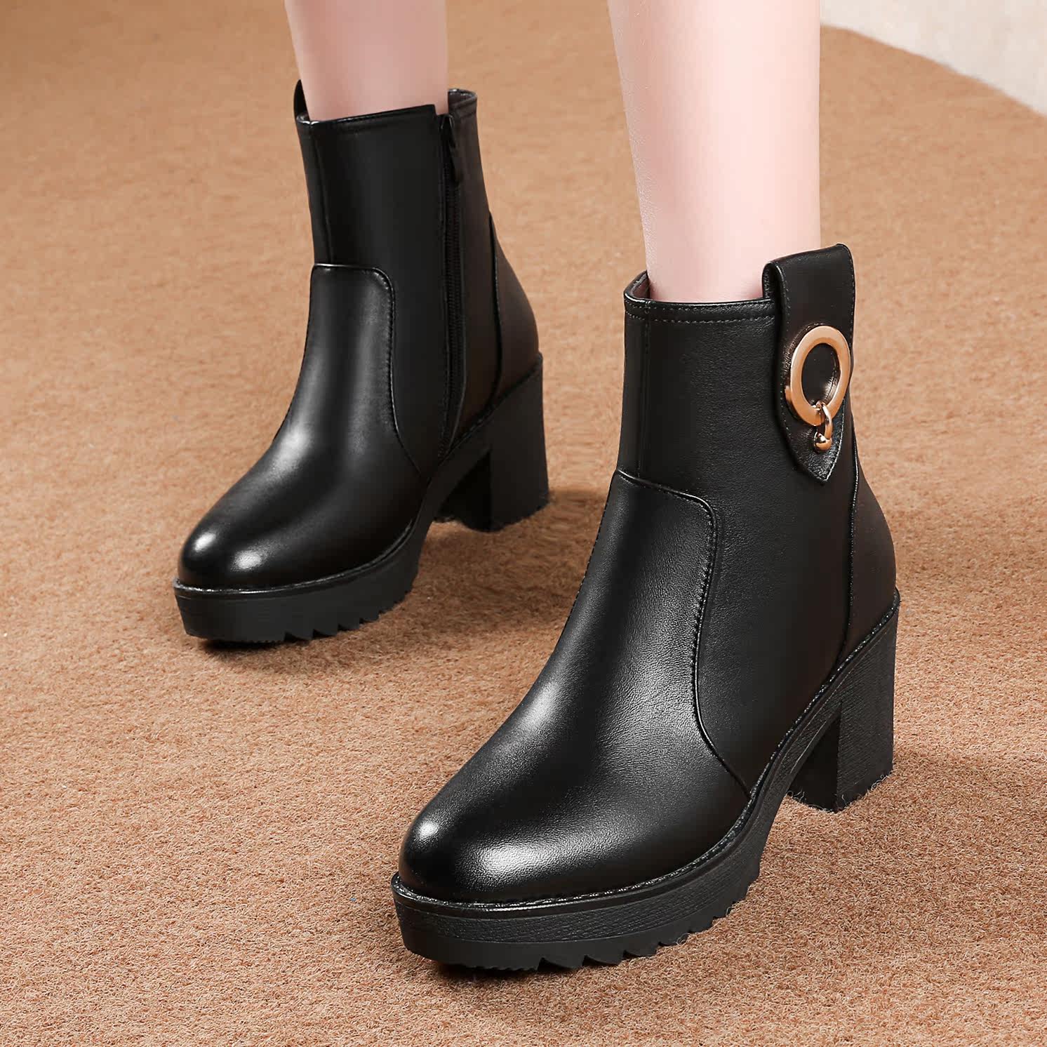 Зимние высокие нескользящие короткие сапоги для матери, коллекция 2021, из натуральной кожи, большой размер