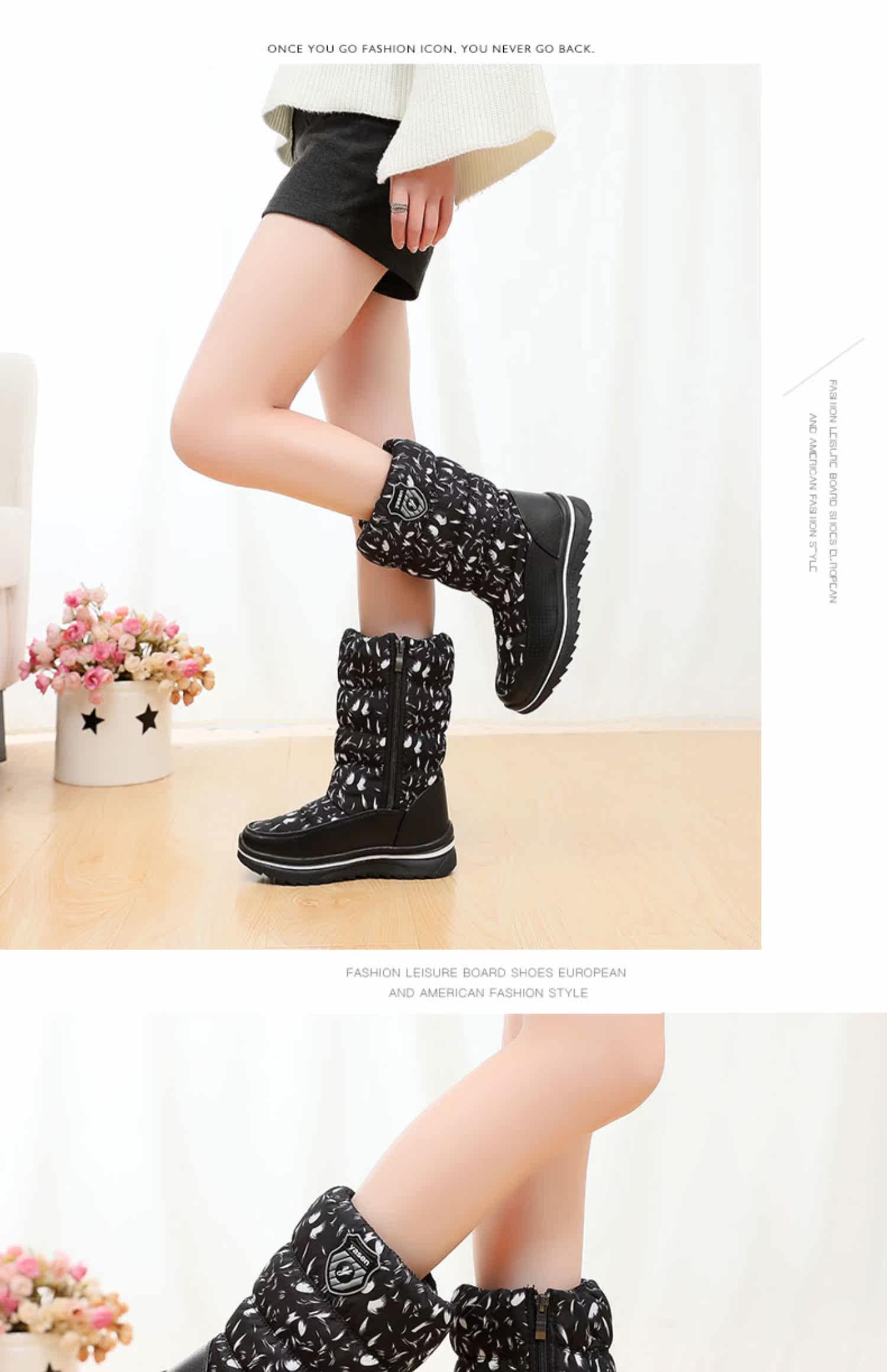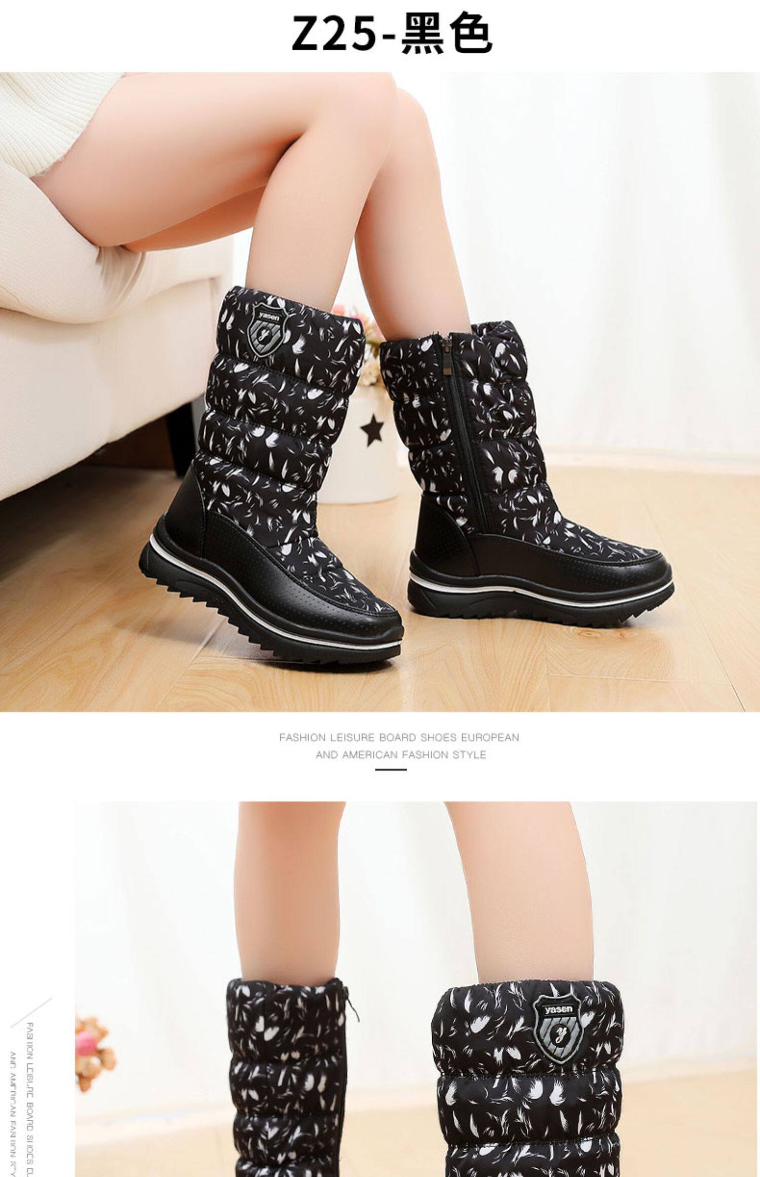 Удерживающие тепло высокие нескользящие зимние утепленные высокие сапоги, ботинки, средней длины