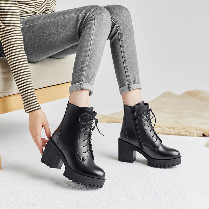 Martens, высокие весенние флисовые короткие сапоги на платформе, коллекция 2022, из натуральной кожи