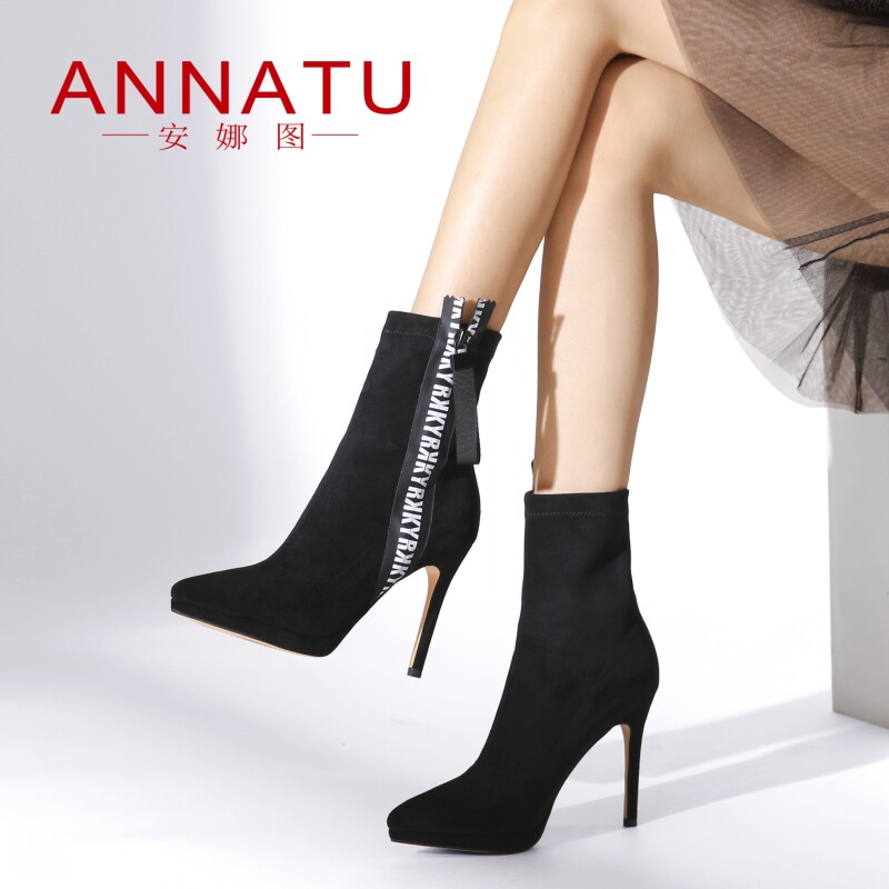 Универсальные демисезонные эластичные короткие сапоги с заостренным носом на высоком каблуке, по фигуре