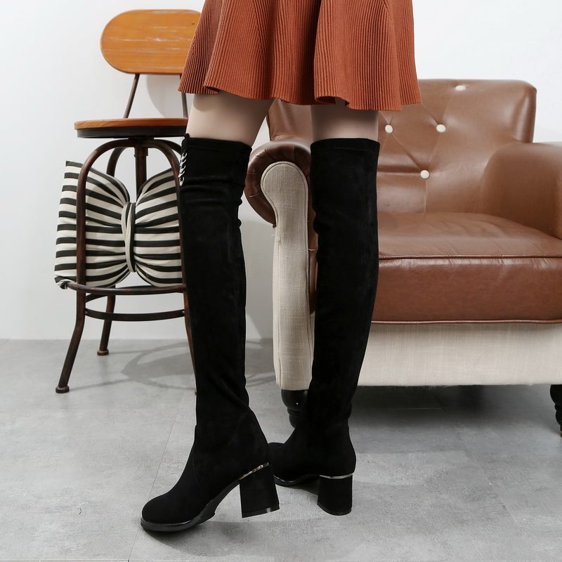 Высокие сапоги, демисезонные эластичные флисовые высокие ботинки, по фигуре