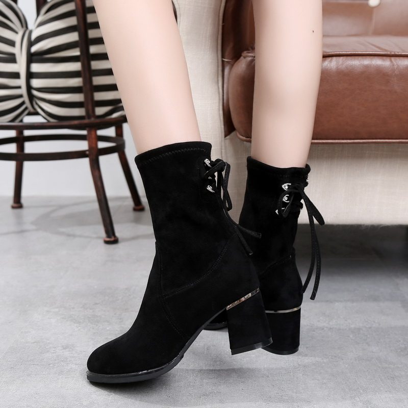 Демисезонные ботинки, флисовые эластичные короткие сапоги, средней длины