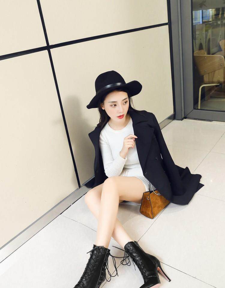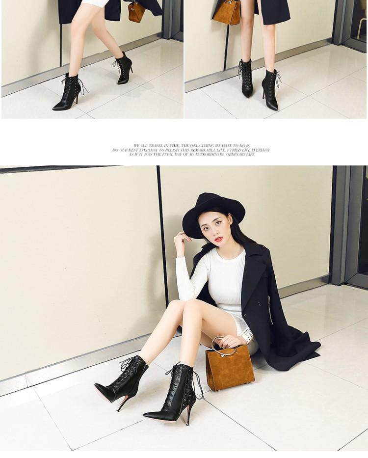 Европейские и американские короткие сапоги на высоком каблуке с острым носком, римские сапоги на высоком каблуке со шнуровкой, ботильоны, короткие сапоги большого размера, 43, 44, 45, 46, 47, большие размеры.