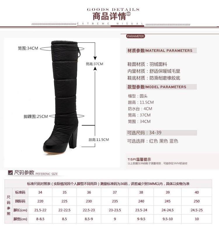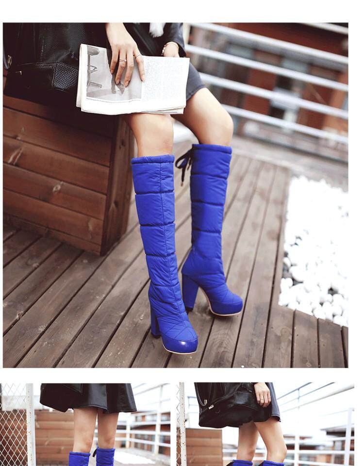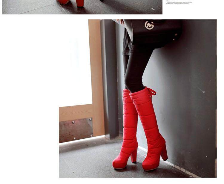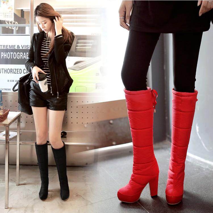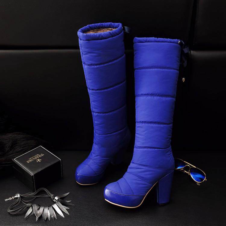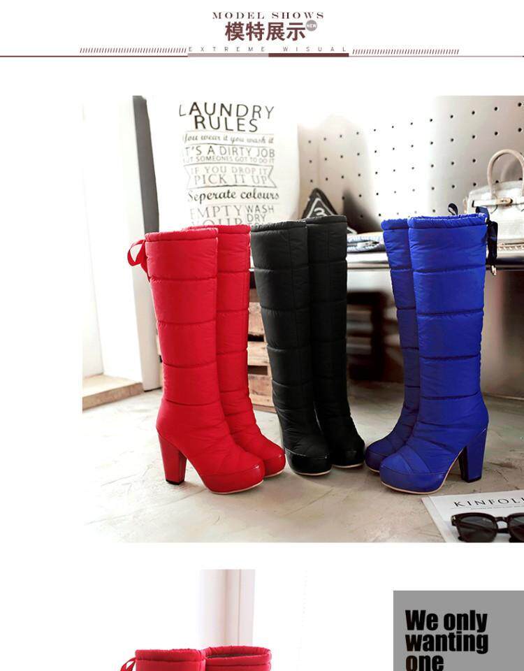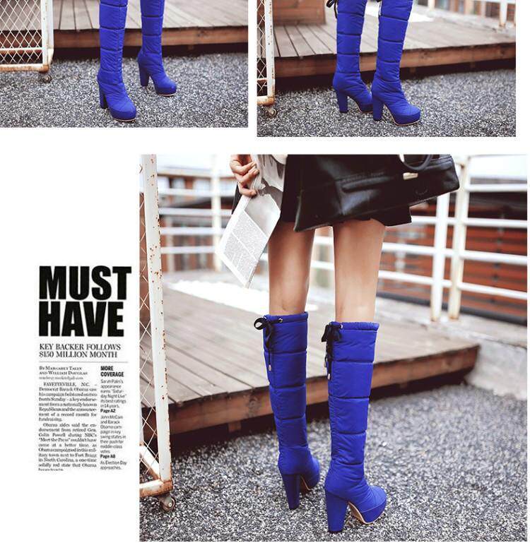 Зима и колена высокая трубка снежные ботинки женские хлопчатобумажные сапоги сгущенные волосы теплые хлопковые туфли густой каблуки водонепроницаемые платформы рукав