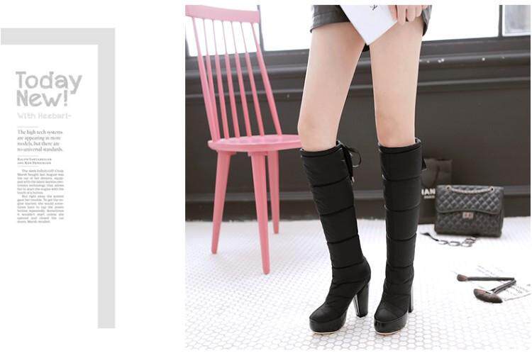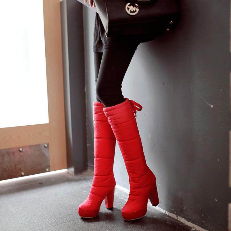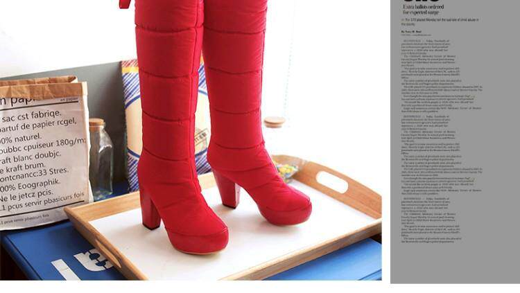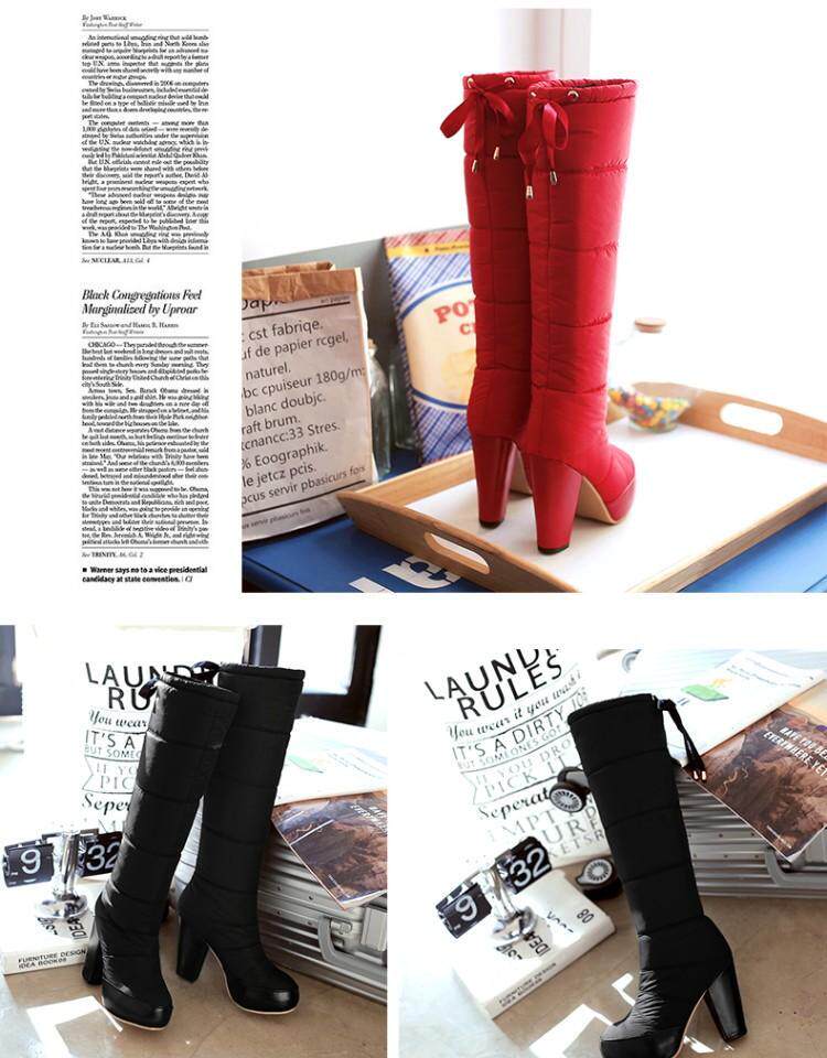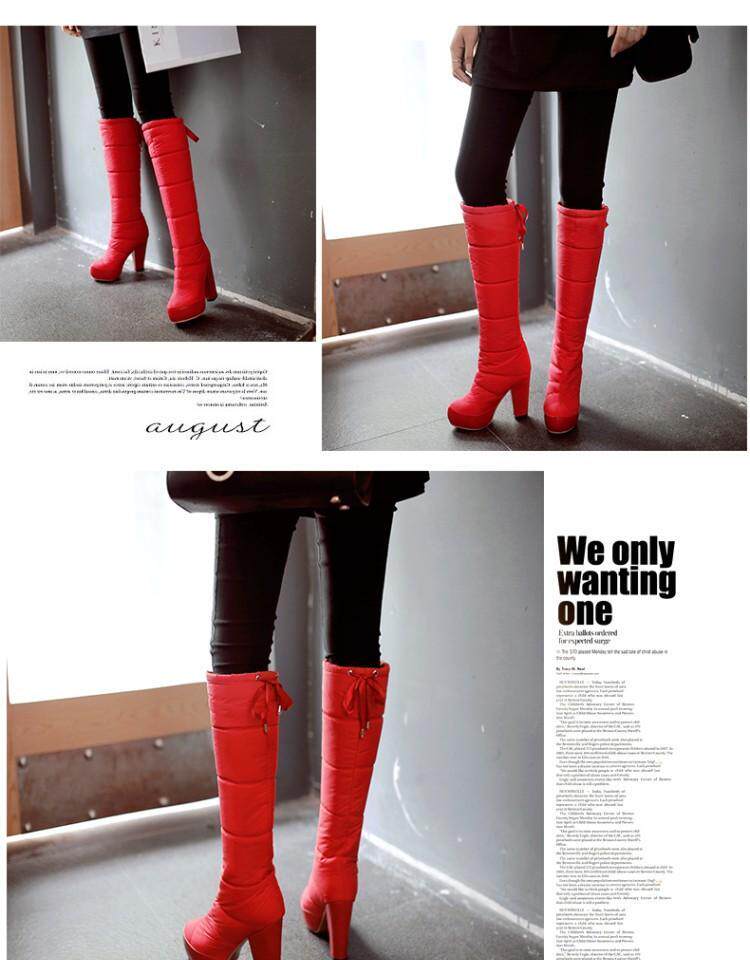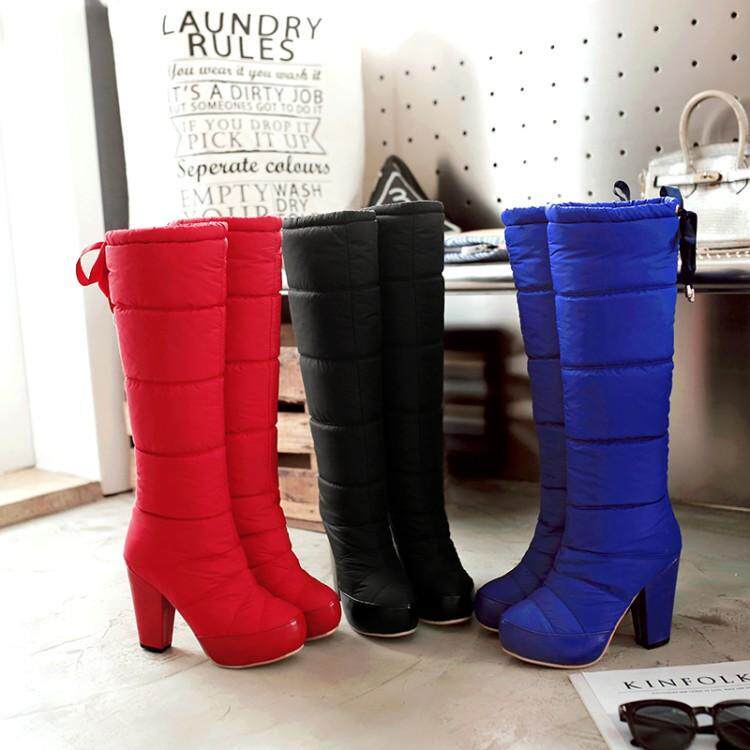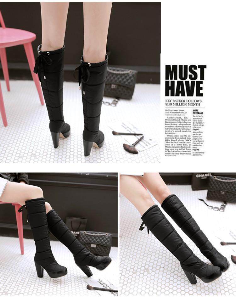 Зима и колена высокая трубка снежные ботинки женские хлопчатобумажные сапоги сгущенные волосы теплые хлопковые туфли густой каблуки водонепроницаемые платформы рукав