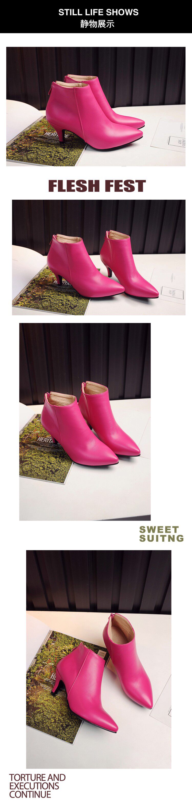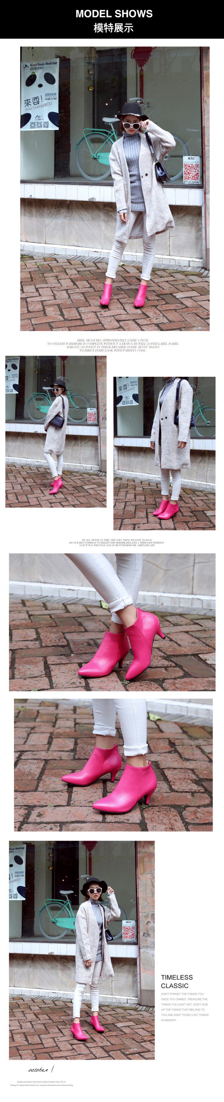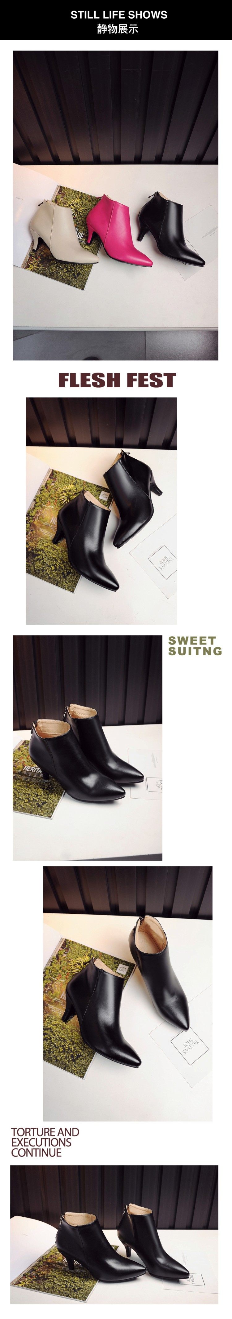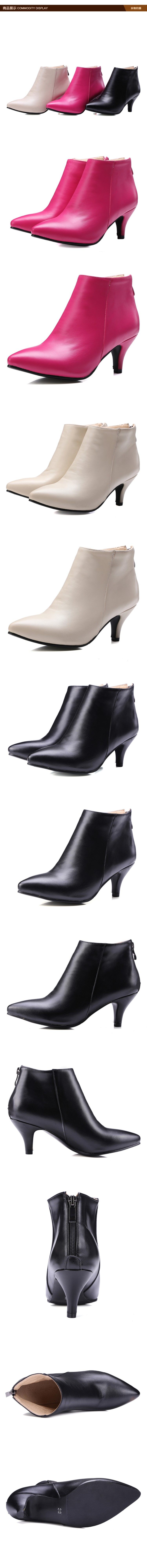 Повседневные и универсальные короткие ботинки на высоком каблуке с тонким острым носком на молнии, короткие ботинки большого размера 44, 45, 46, 47, 48, розово-красные.