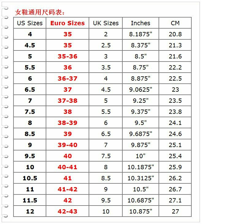 | Размер обуви: | 5.5, 6, 6.5, 7, 7.5, 8, 8.5, 9, 9.5, 10, 10.5, 11, Не завершено, пожалуйста, проконсультируйтесь, когда вы снимаете! |