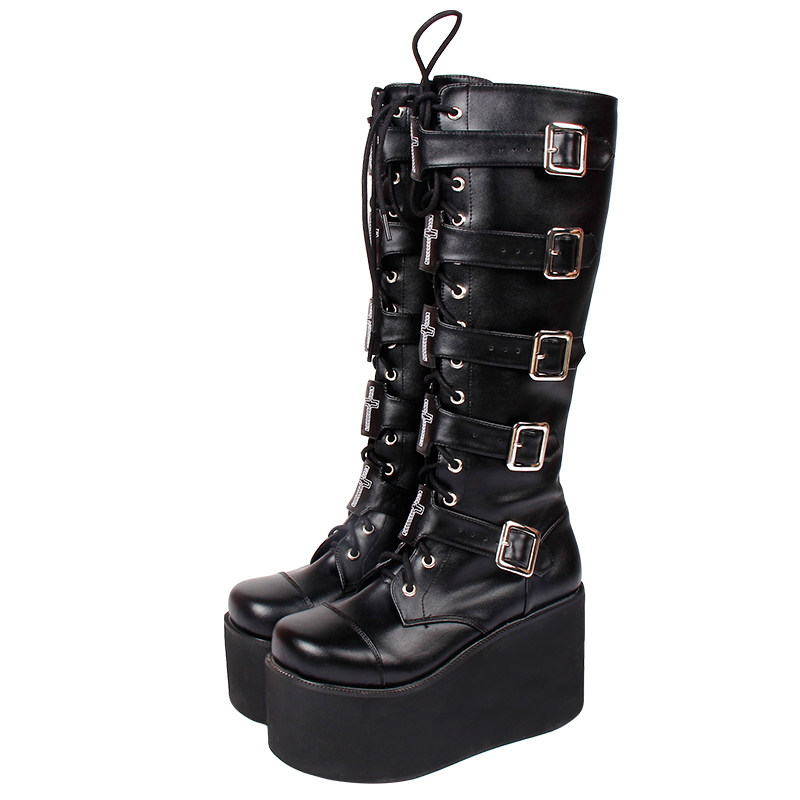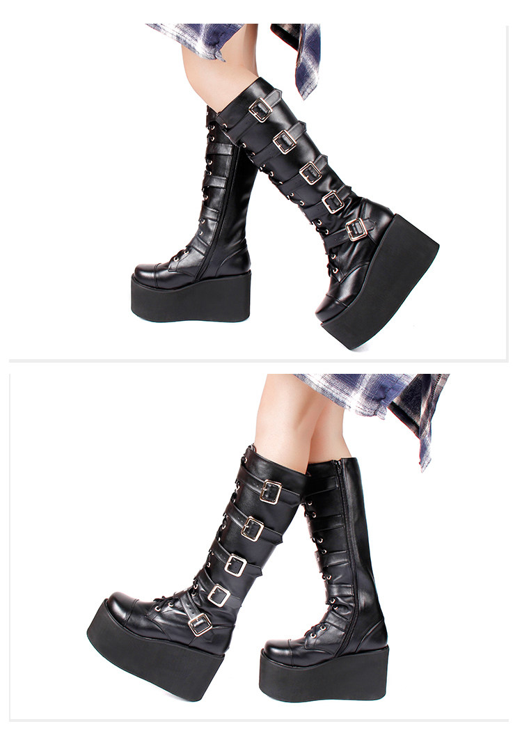 Зимние высокие сапоги на платформе, коллекция 2021, стиль Лолита, в стиле панк