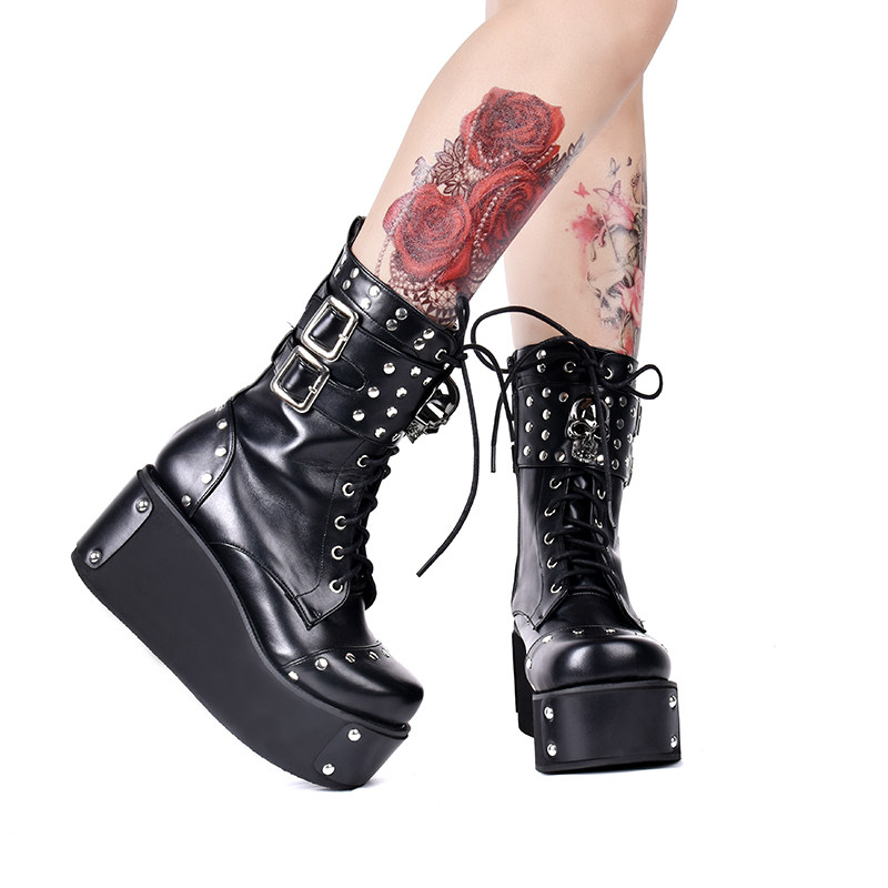 Демисезонные короткие сапоги на платформе, стиль Лолита