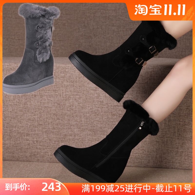 Зимние высокие удерживающие тепло короткие сапоги, обувь, из натуральной кожи, 10см, по фигуре, средней длины