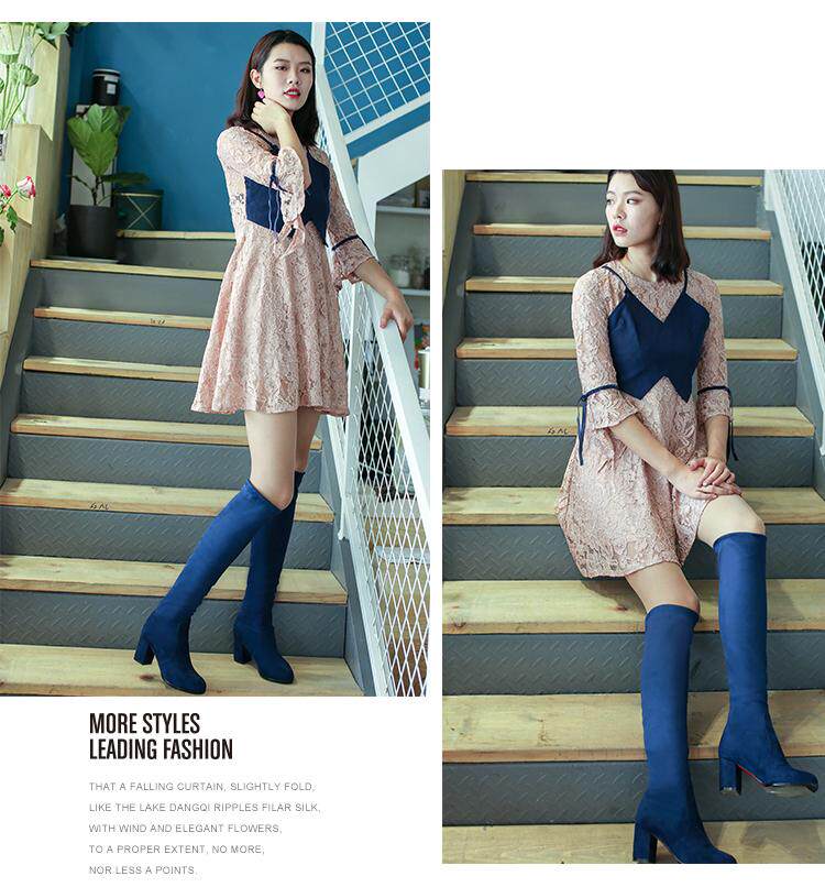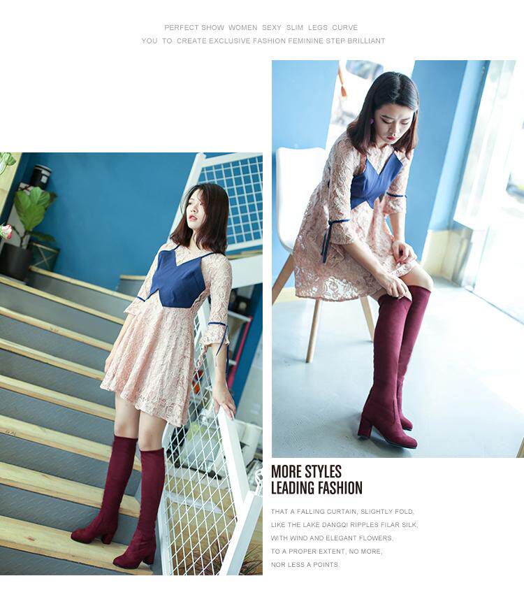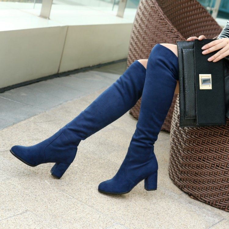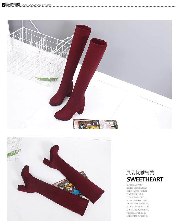 Бесплатная доставка осень и зима Новая толстая высокая каблука круглая голова мягкая бархатная поверхность длинные сапоги с синим вином красные леопардовые женские ботинки