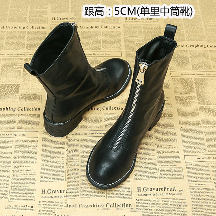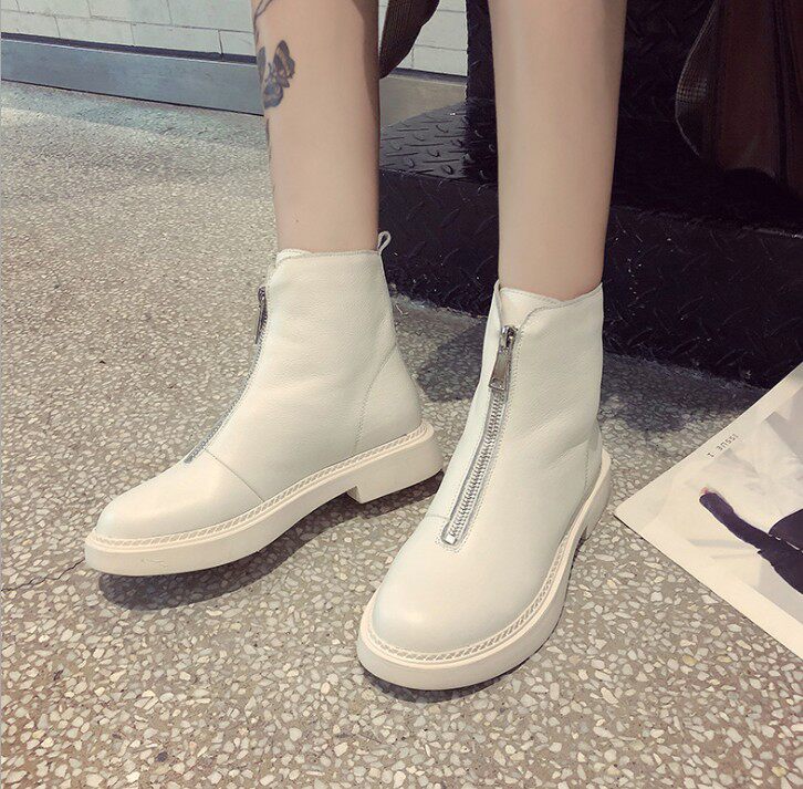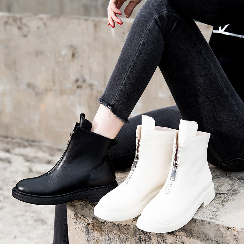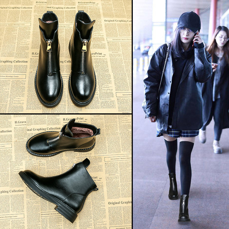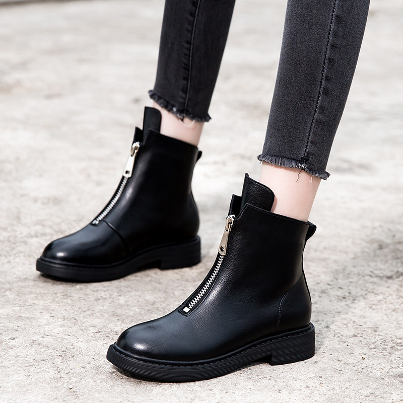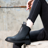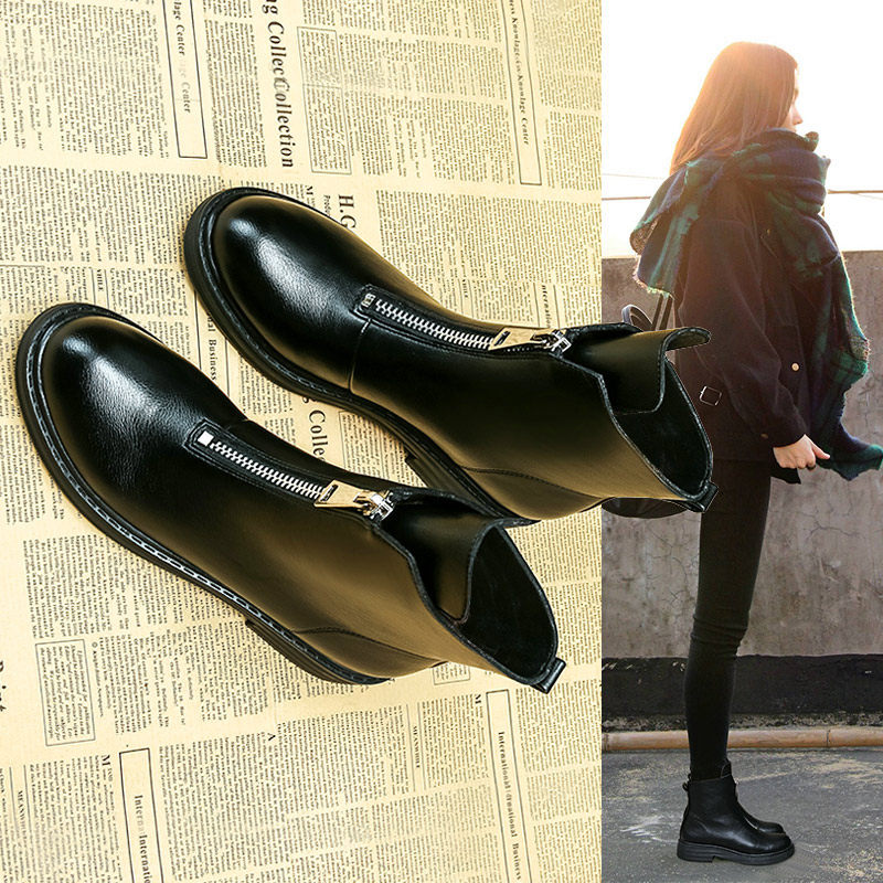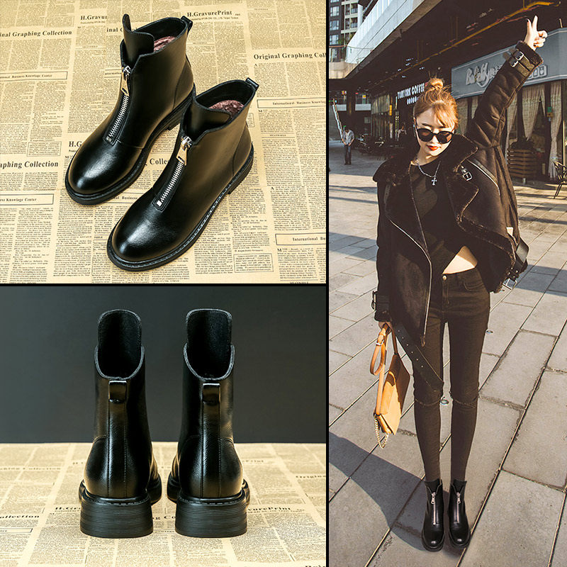 Martens, демисезонные короткие сапоги в английском стиле на платформе, универсальные ботинки для кожаной обуви с молнией, коллекция 2023, в британском стиле, из натуральной кожи