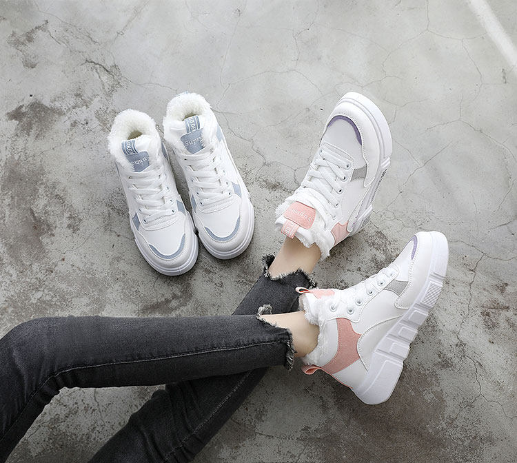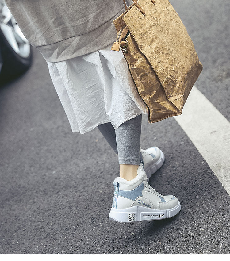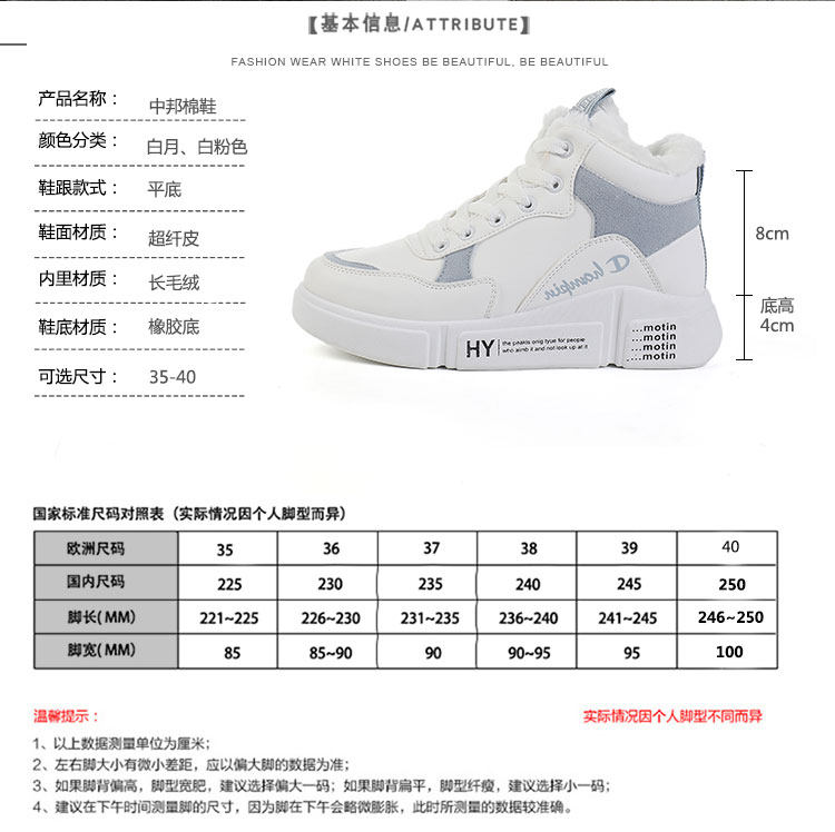 Зимняя утепленная белая обувь, высокие тканевые сапоги, в корейском стиле