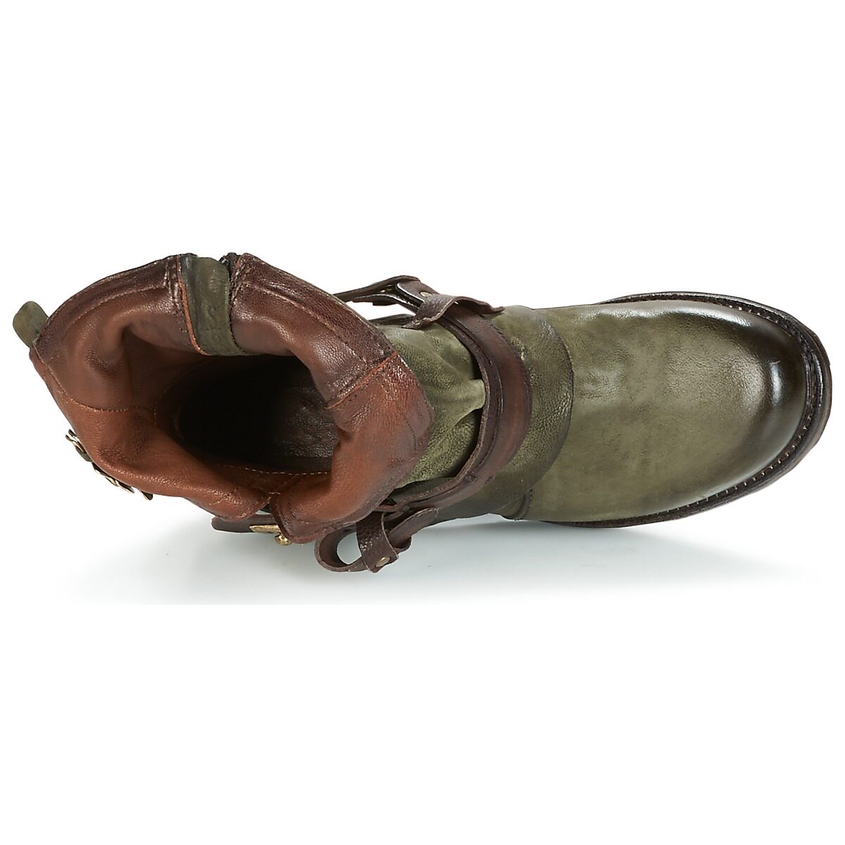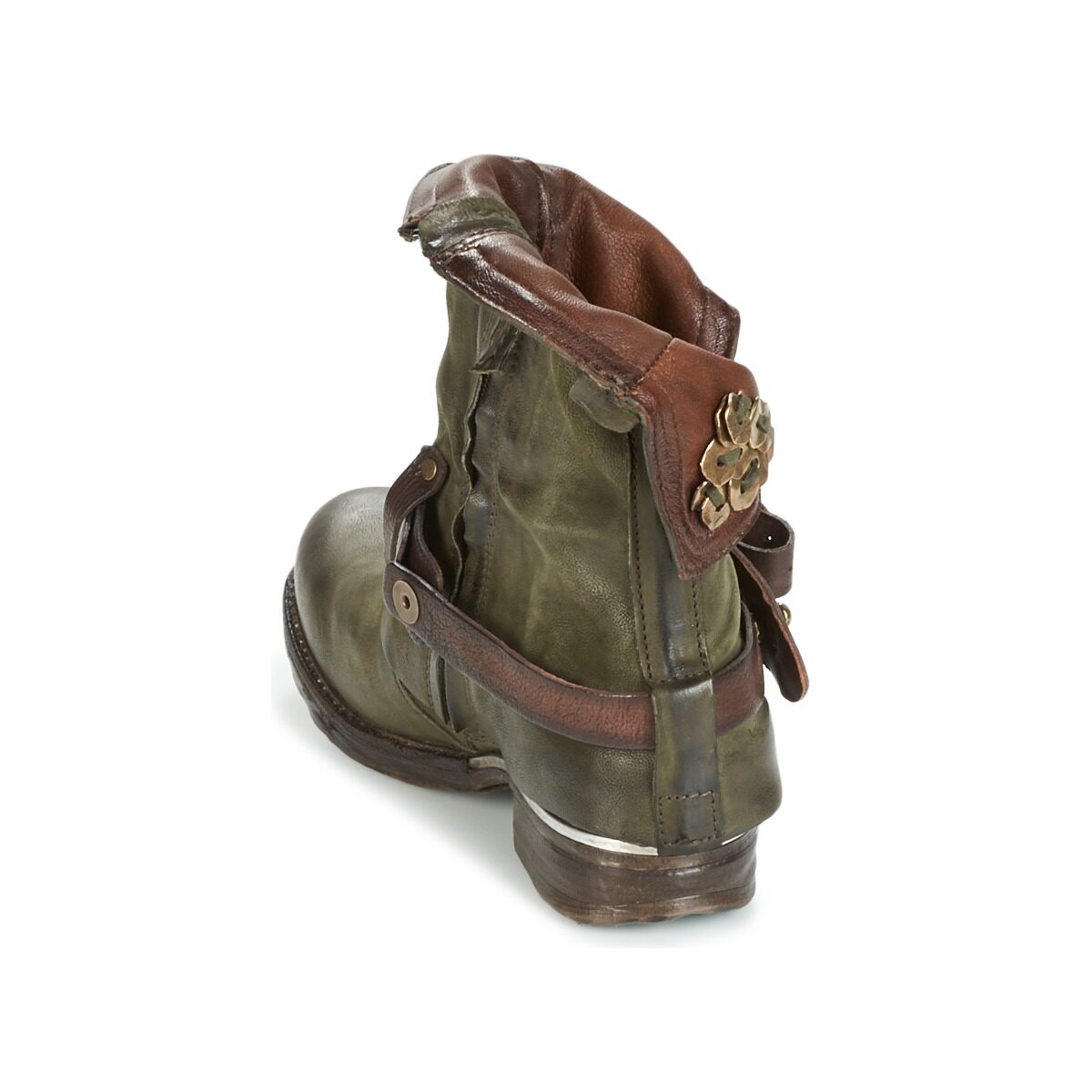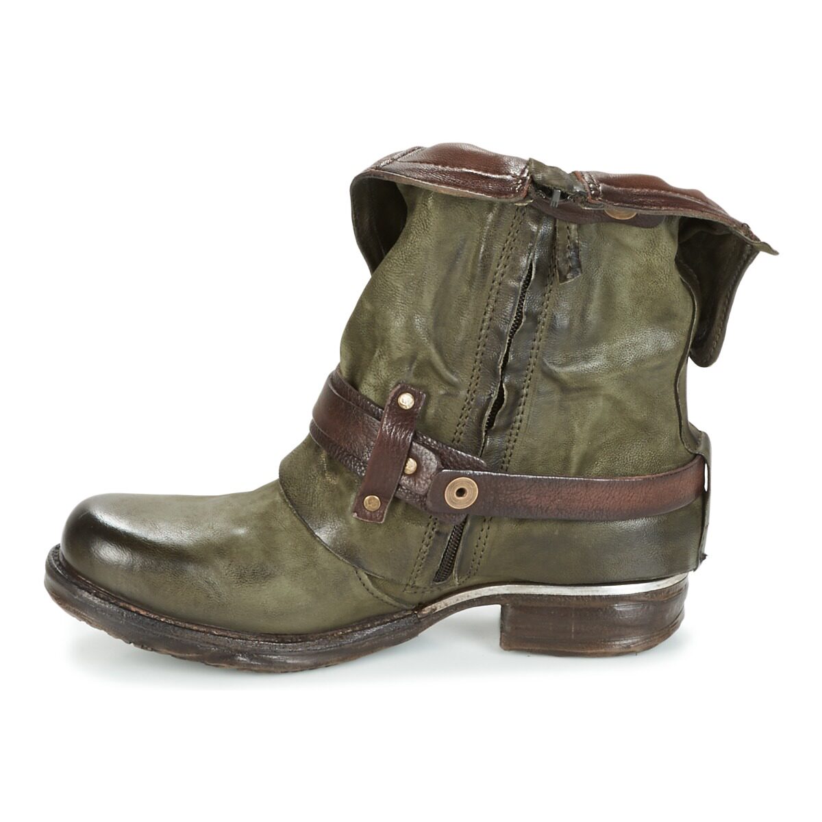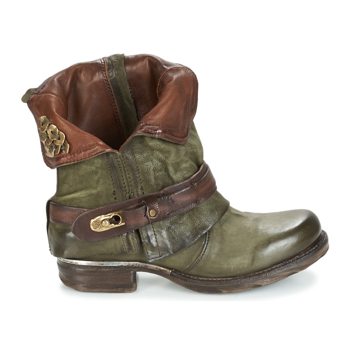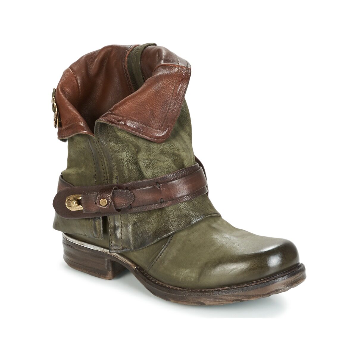 A.S.98 Зеленые низкие каблуки в кожаных ботинках в средней трубке