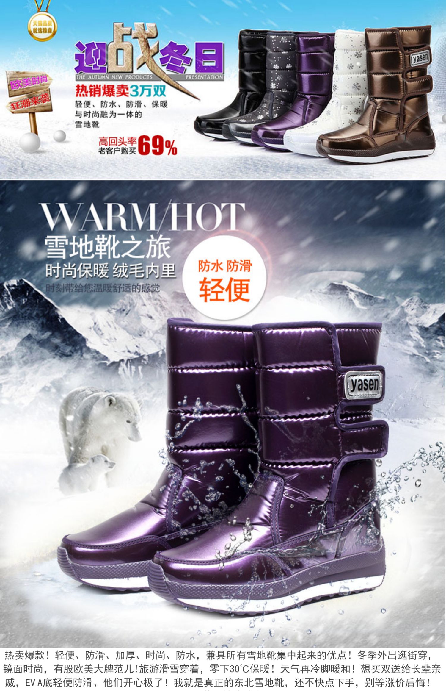 Высокая нескользящая удерживающая тепло зимняя утепленная обувь, высокие сапоги, ботинки, средней длины