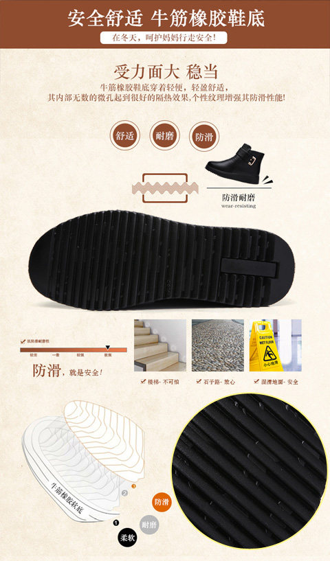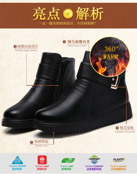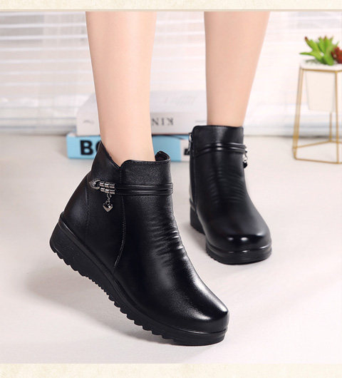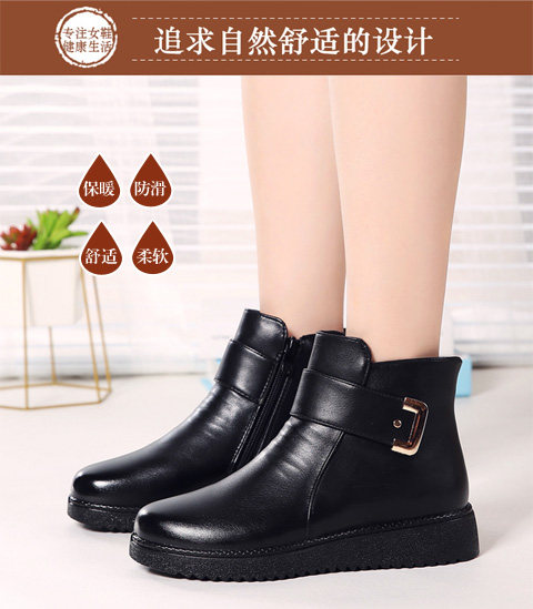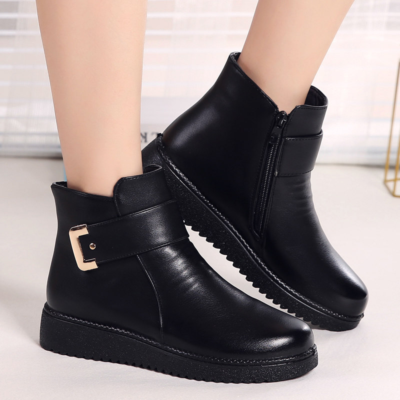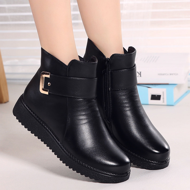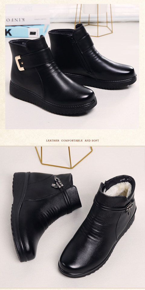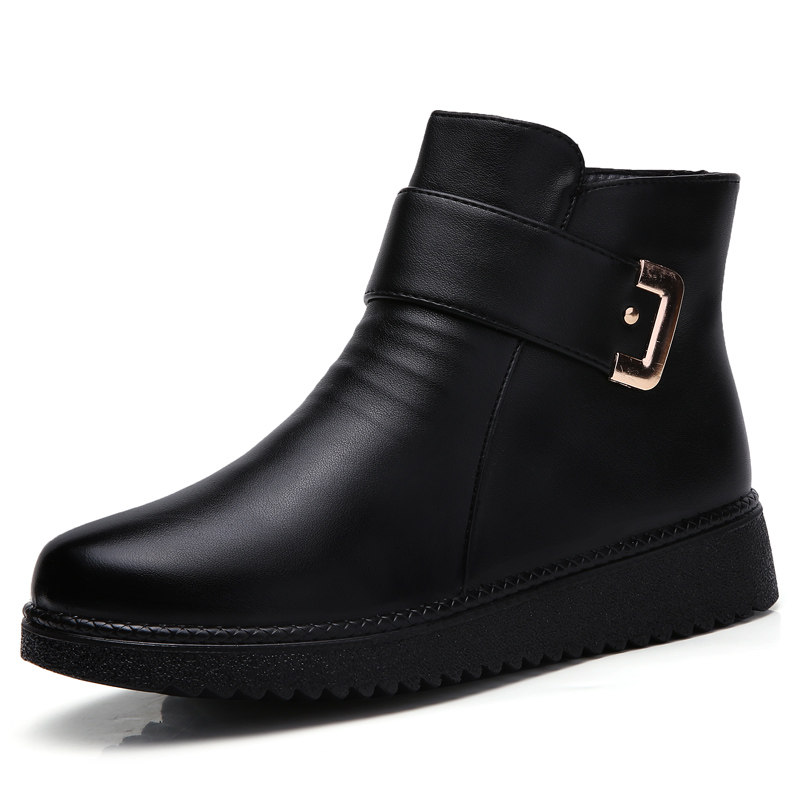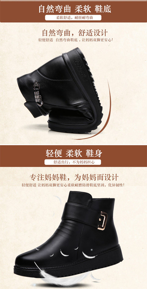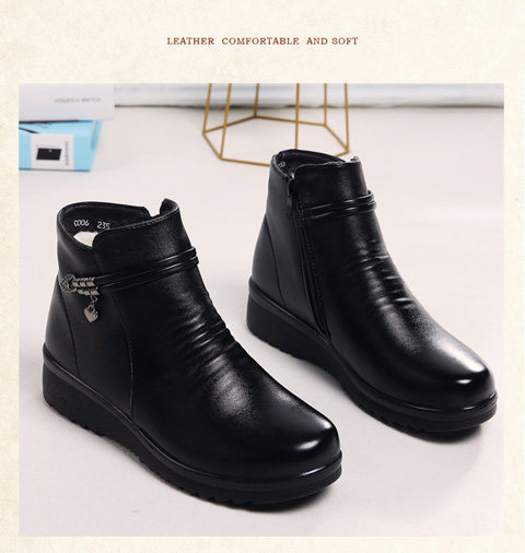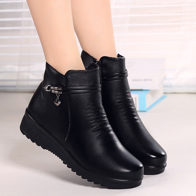 Зимние удерживающие тепло флисовые нескользящие короткие сапоги для матери для кожаной обуви, из натуральной кожи, для среднего возраста