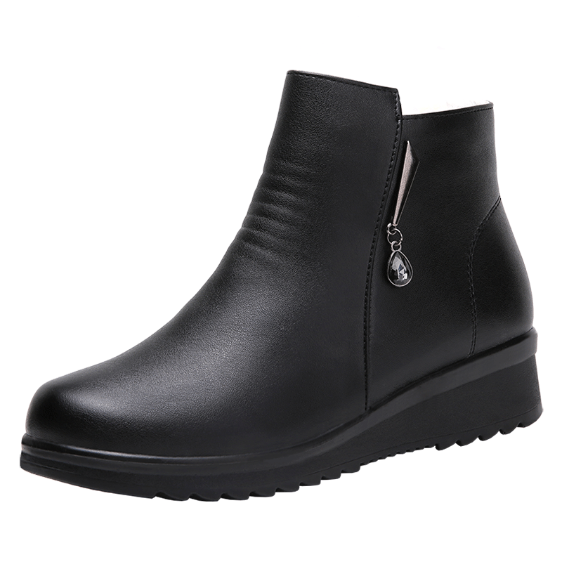 Зимняя обувь для матери, флисовые удерживающие тепло нескользящие короткие сапоги для кожаной обуви, мягкая подошва, для среднего возраста