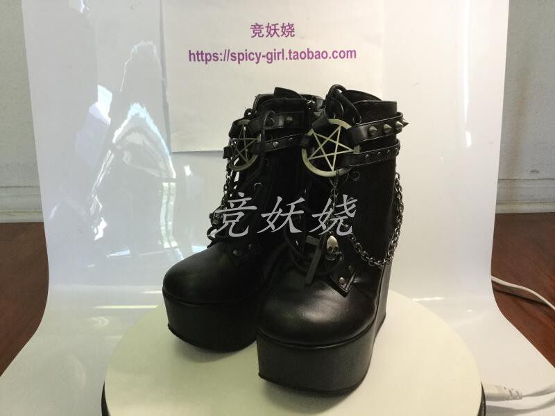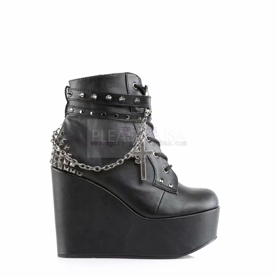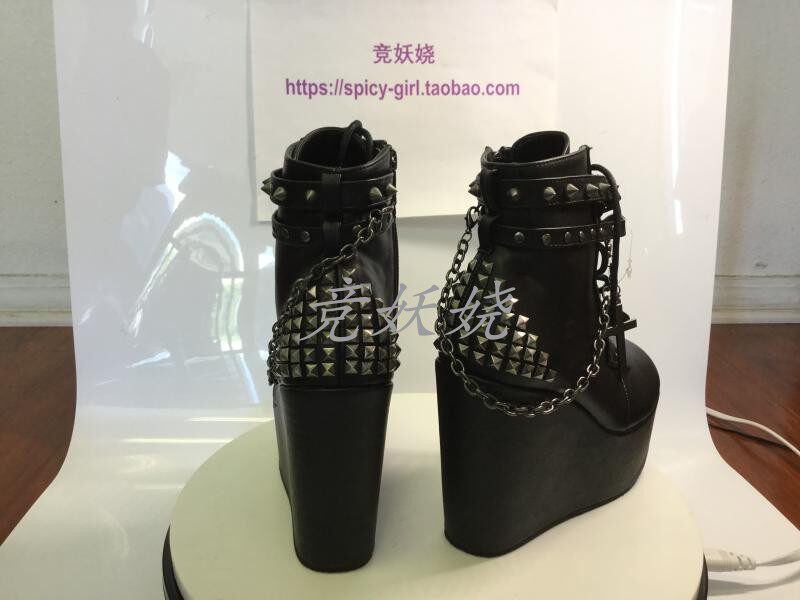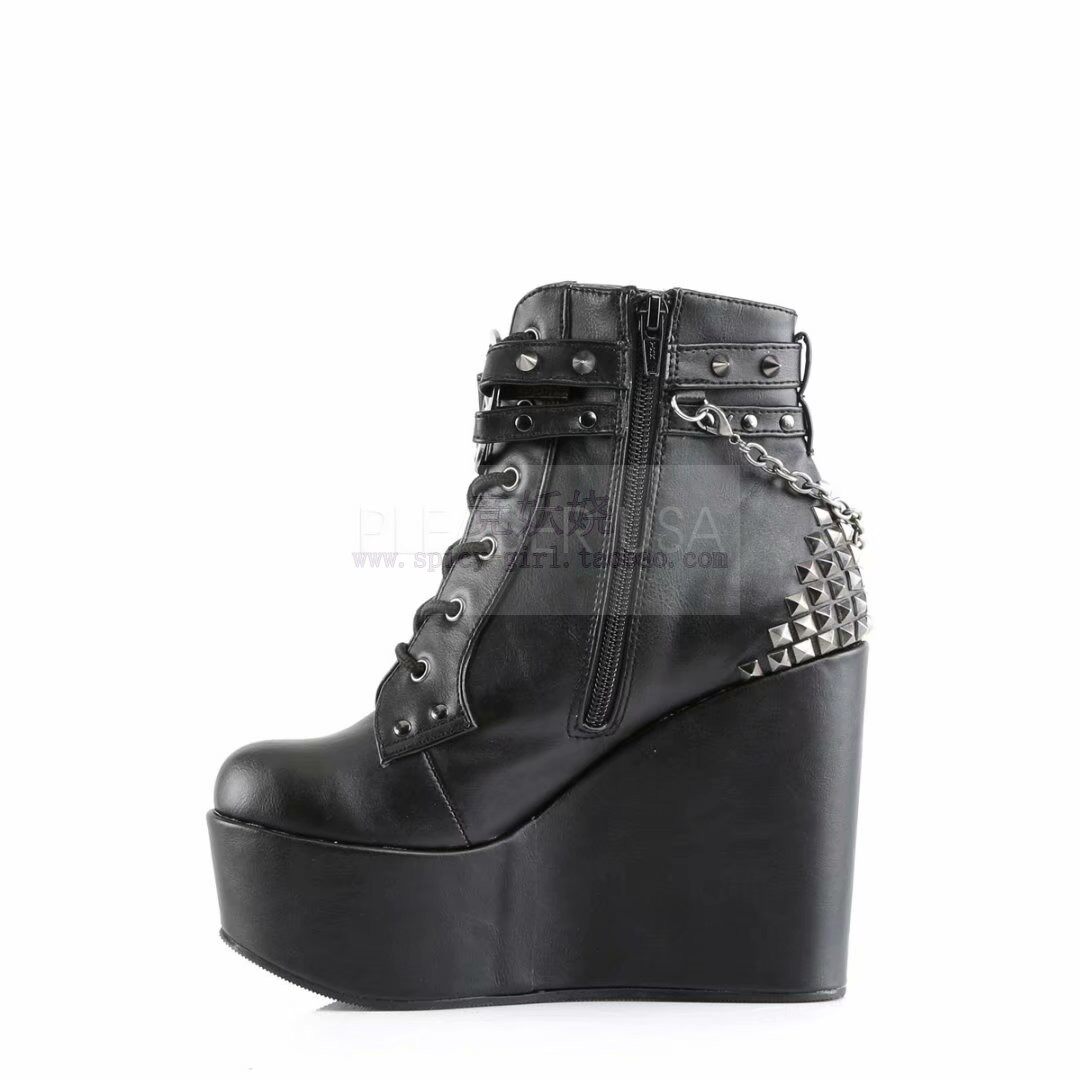 Ботильоны для черной кожи на платформе, цепь, короткие сапоги, США, 12.7см