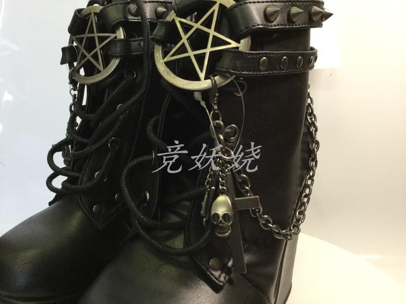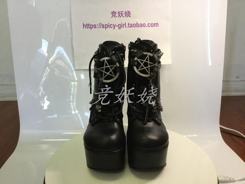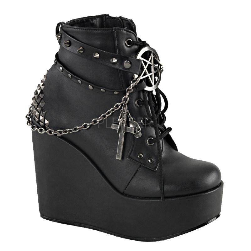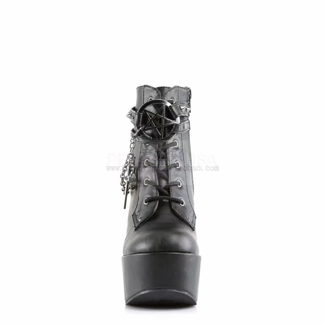 Черные кожаные ботильоны American Demonia на толстой подошве, женские короткие ботинки с крестом и цепочкой, украшенные пятиконечной звездой