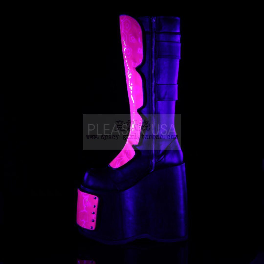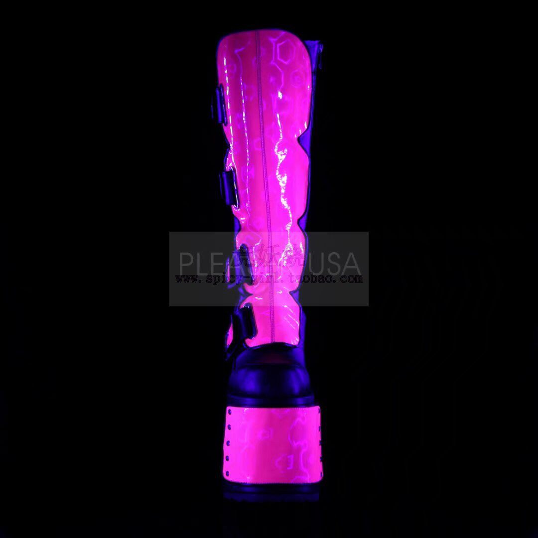 Сапоги на платформе, ремень, флуоресцентная двухцветная пряжка, цепочка с молнией, США, 17.8см, средней длины