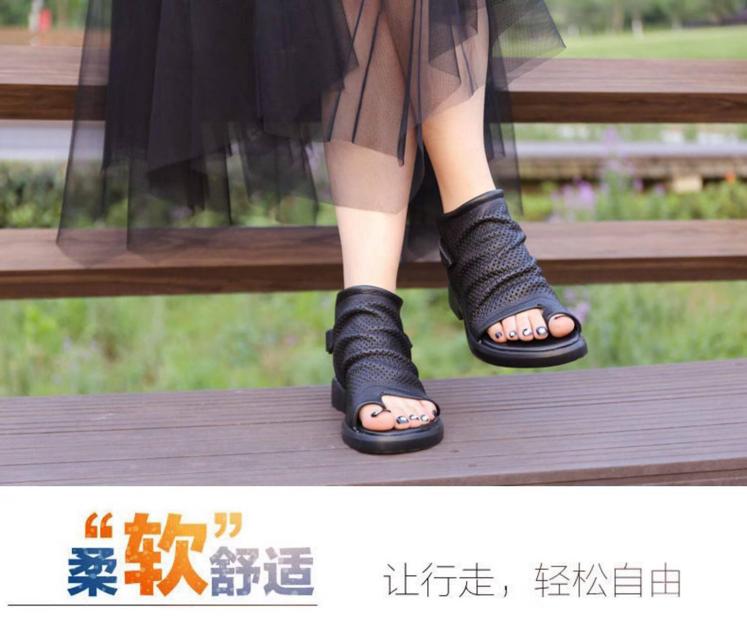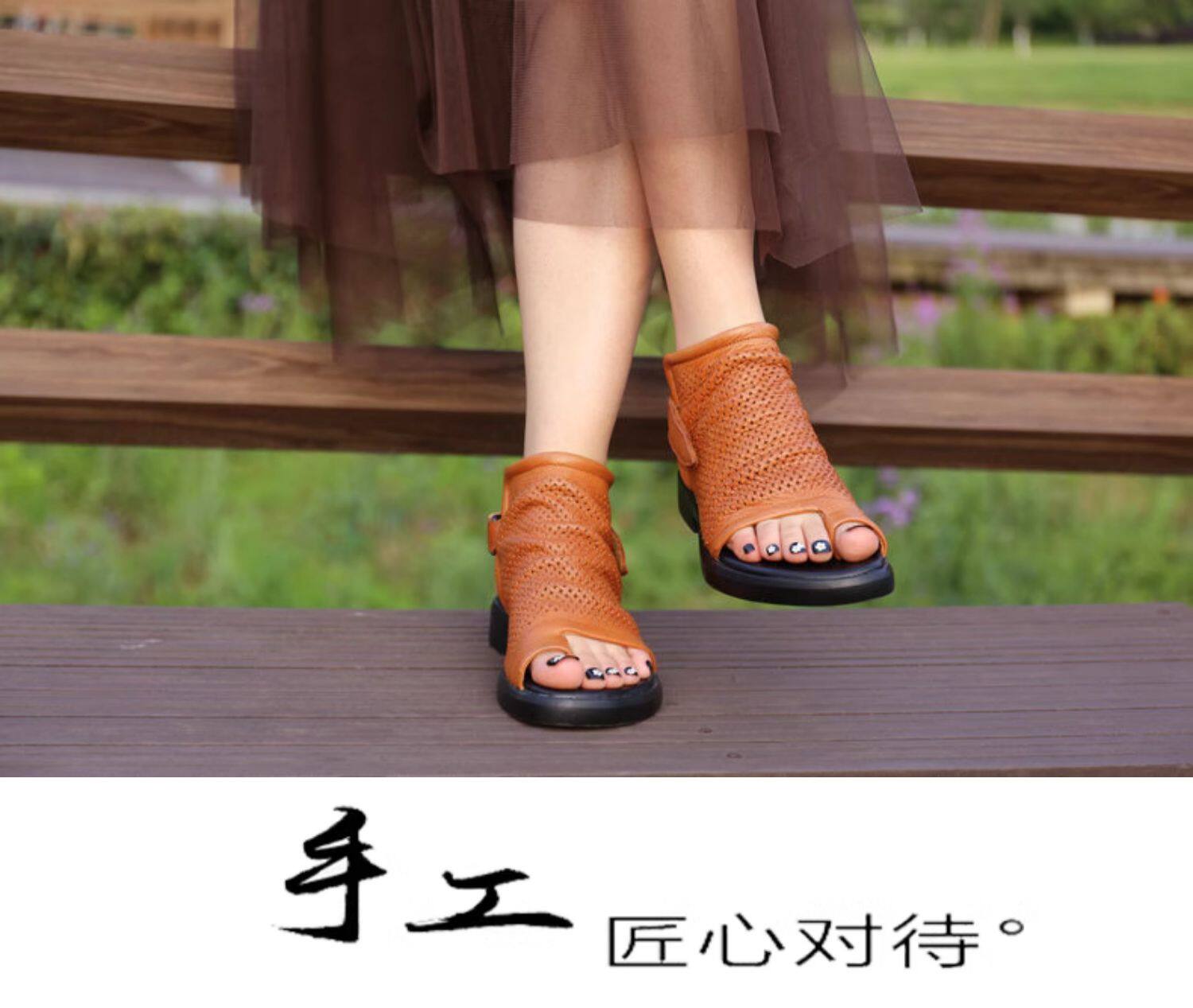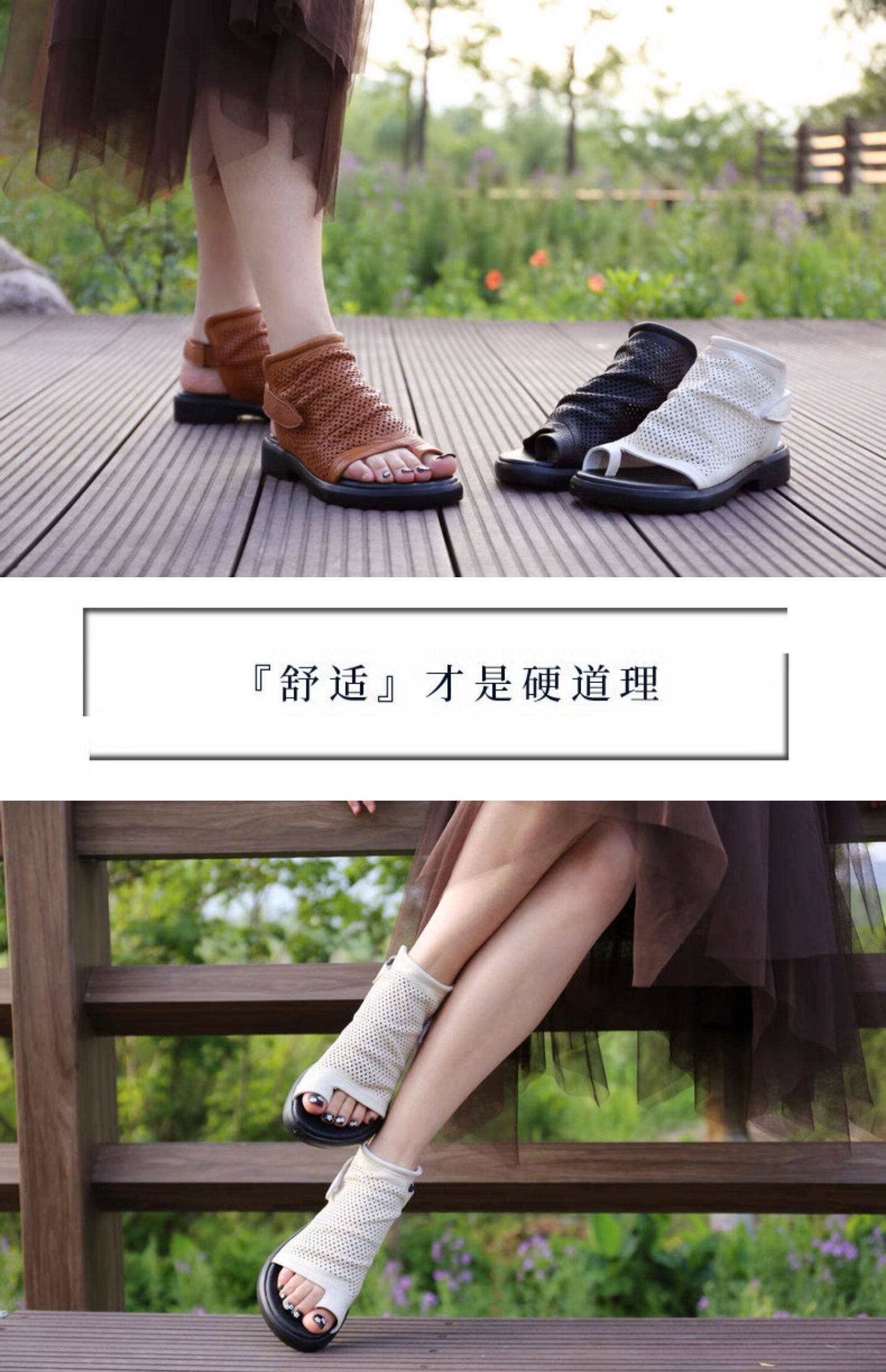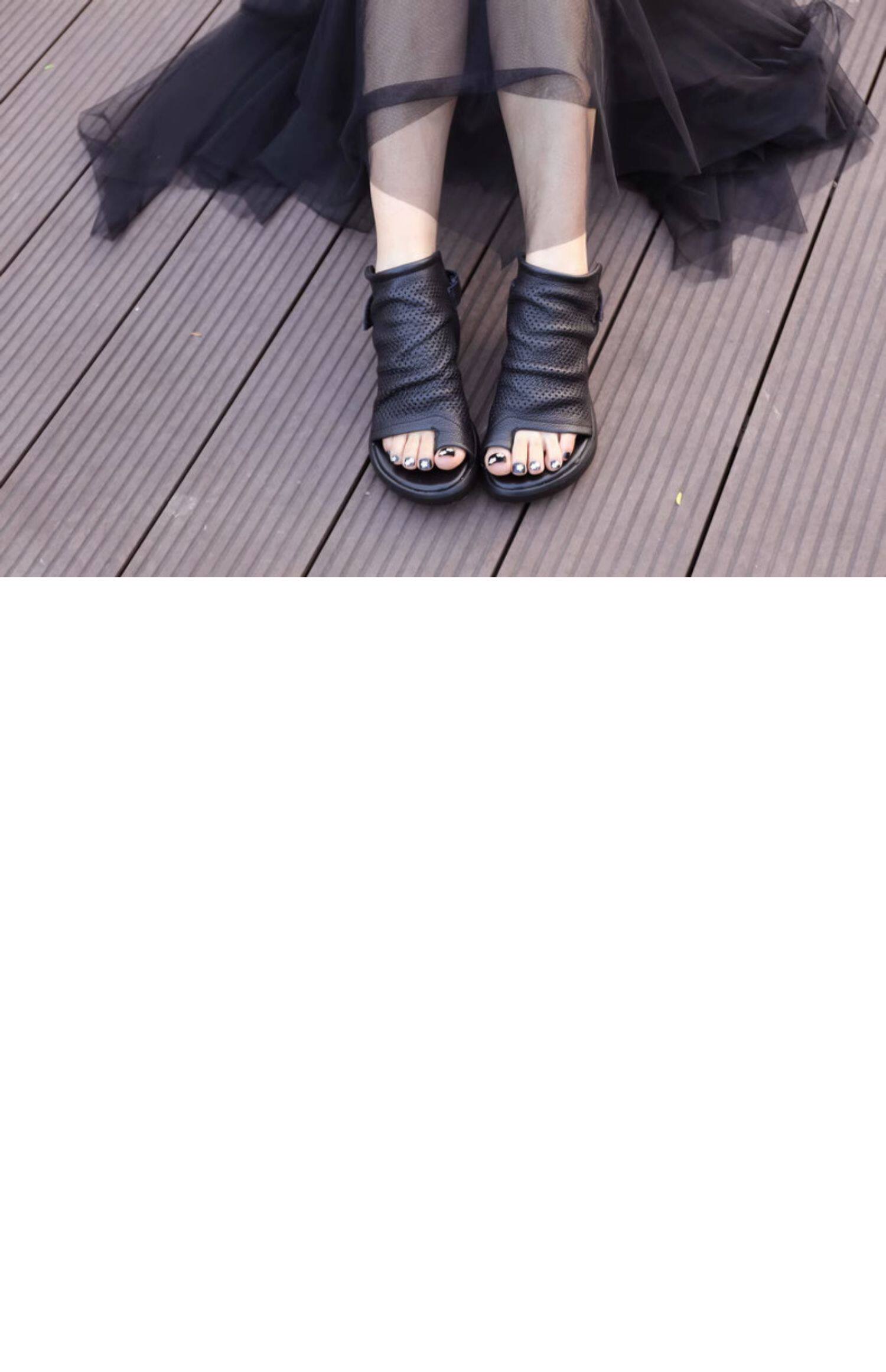 Короткие сапоги, летние ботинки, высокие сапоги, босоножки, из натуральной кожи, французский стиль, в стиле Шанель