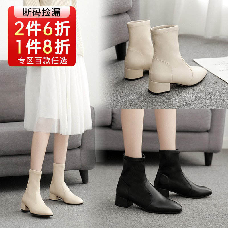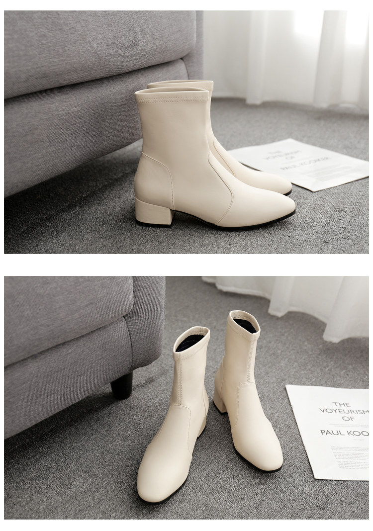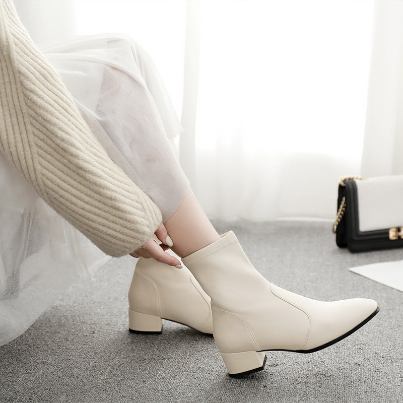 Зимние модные бежевые эластичные короткие сапоги, ботинки, 2022, городской стиль, в корейском стиле, средней длины