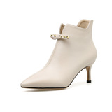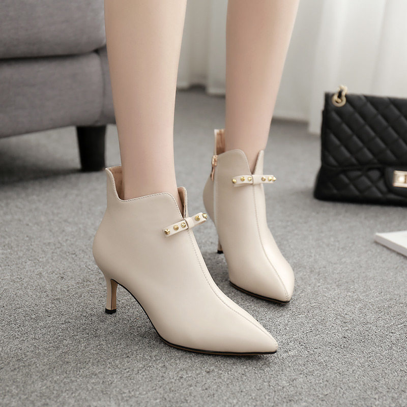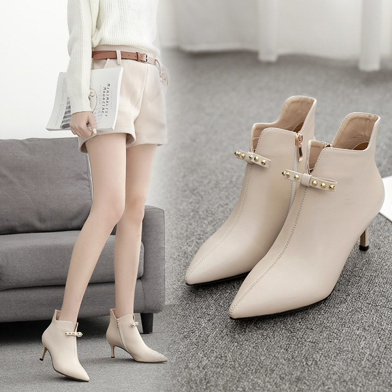 Вместительные и большые нюдовые короткие сапоги с бантиком, женская подходит с юбкой, ботильоны, ботинки, из натуральной кожи